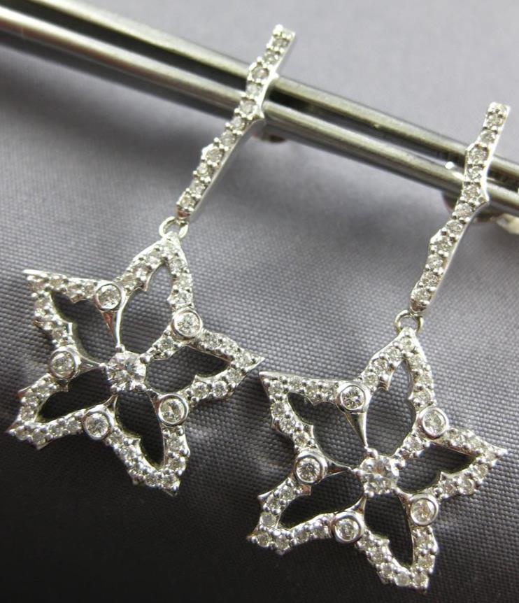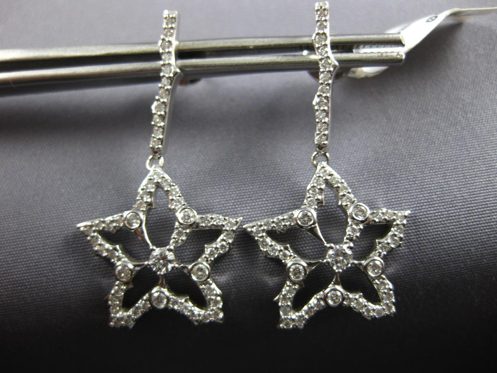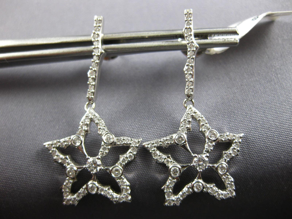ESTATE LARGE 14KT WHITE GOLD HANGING EARRINGS. 3D STAR SNOWFLAKE DESIGN. DIAMONDS ARE F/G COLOR, VSSI CLARITY 1.0 CARAT. MEASURES 35mm X 18mm. WRITTEN APPRAISAL AVAILABLE. COMES IN A PRESENTABLE GIFT BOX.