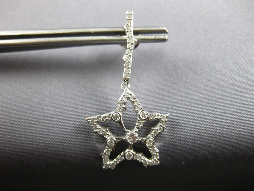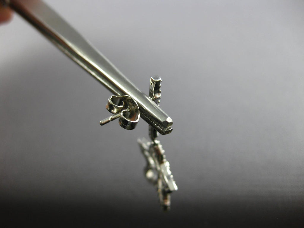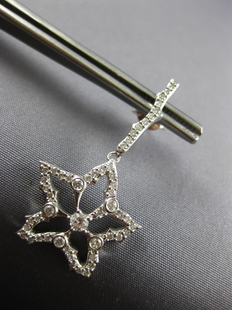 ESTATE LARGE 1.0CT DIAMOND 14KT WHITE GOLD 3D STAR SNOWFLAKE HANGING EARRINGS