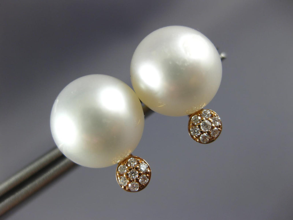 ESTATE LARGE 18KT ROSE GOLD STUD EARRINGS. 3D CLASSIC DESIGN. DIAMONDS ARE F/G COLOR, VSSI CLARITY .10 CARATS. FEATURES 11mm WIDE AAA SOUTH SEA PEARL. EARRINGS MEASURES 15mm X 11mm. WRITTEN APPRAISAL AVAILABLE. COMES IN A PRESENTABLE GIFT BOX.