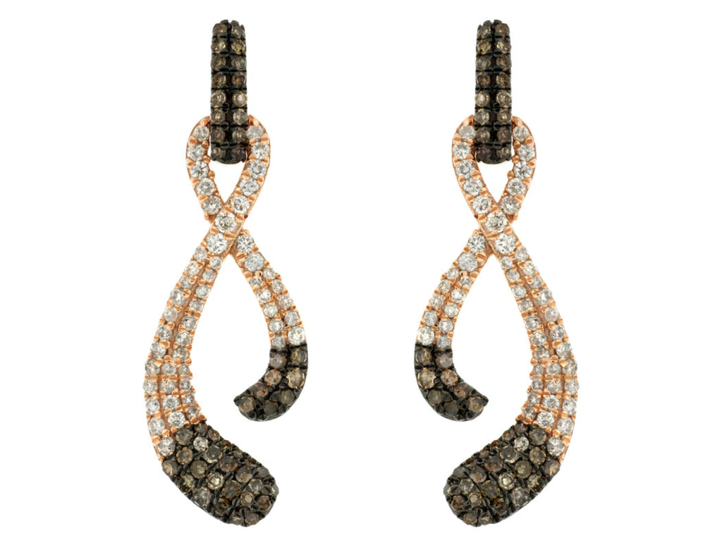 ESTATE LARGE 1.0CT WHITE & MOCHA DIAMOND 14K ROSE GOLD INFINITY HANGING EARRINGS