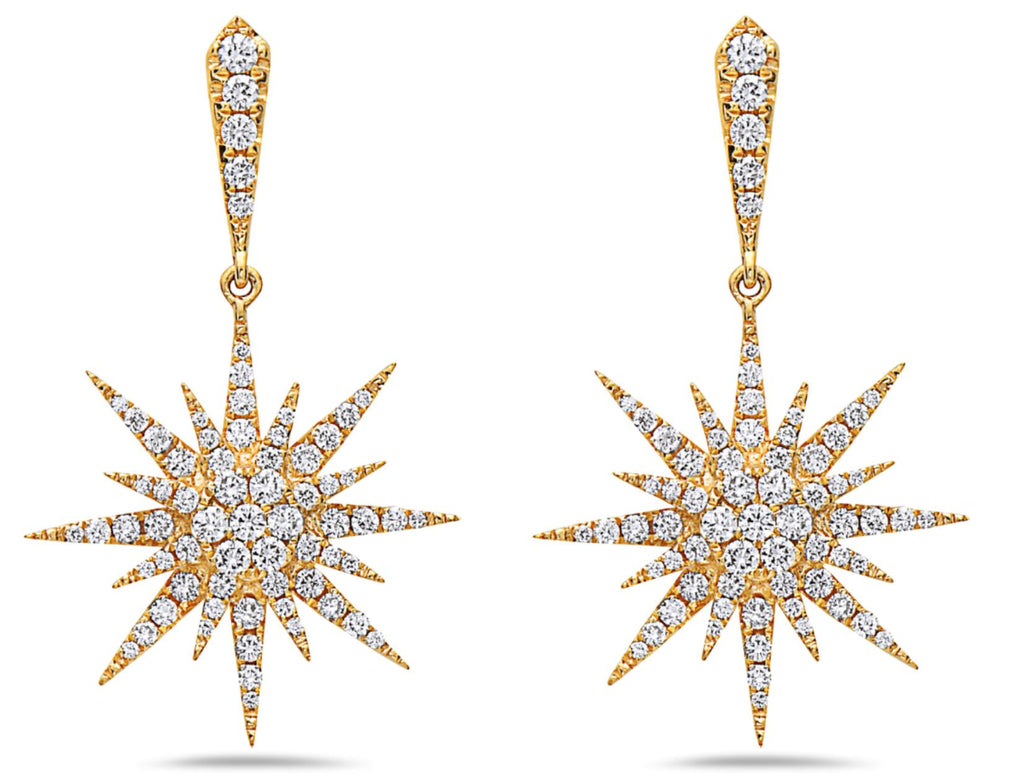 ESTATE LARGE 1.31CT DIAMOND 18KT YELLOW GOLD CLASSIC SNOWFLAKE HANGING EARRINGS