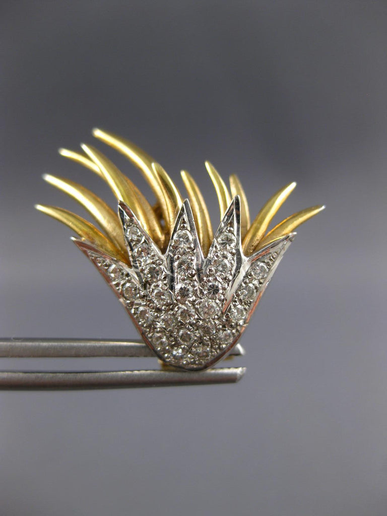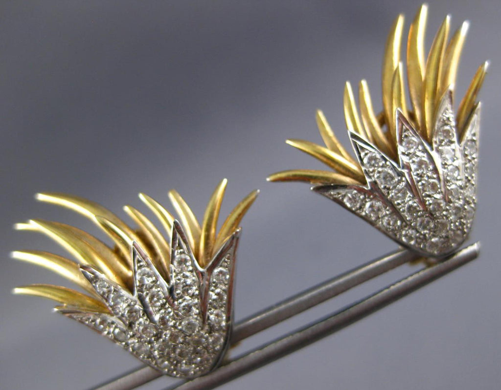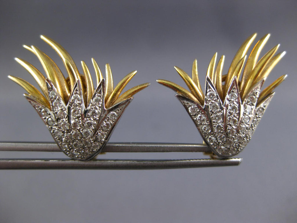 ESTATE LARGE 1.35CT DIAMOND 18KT WHITE & YELLOW GOLD 3D FLOWER CLIP ON EARRINGS