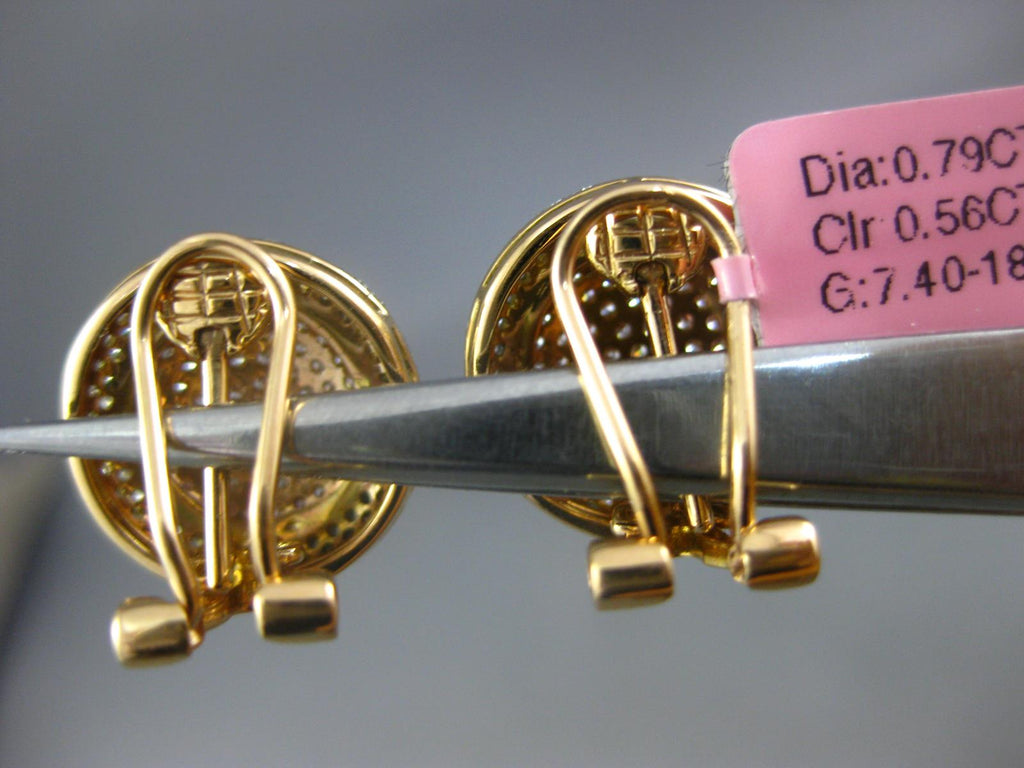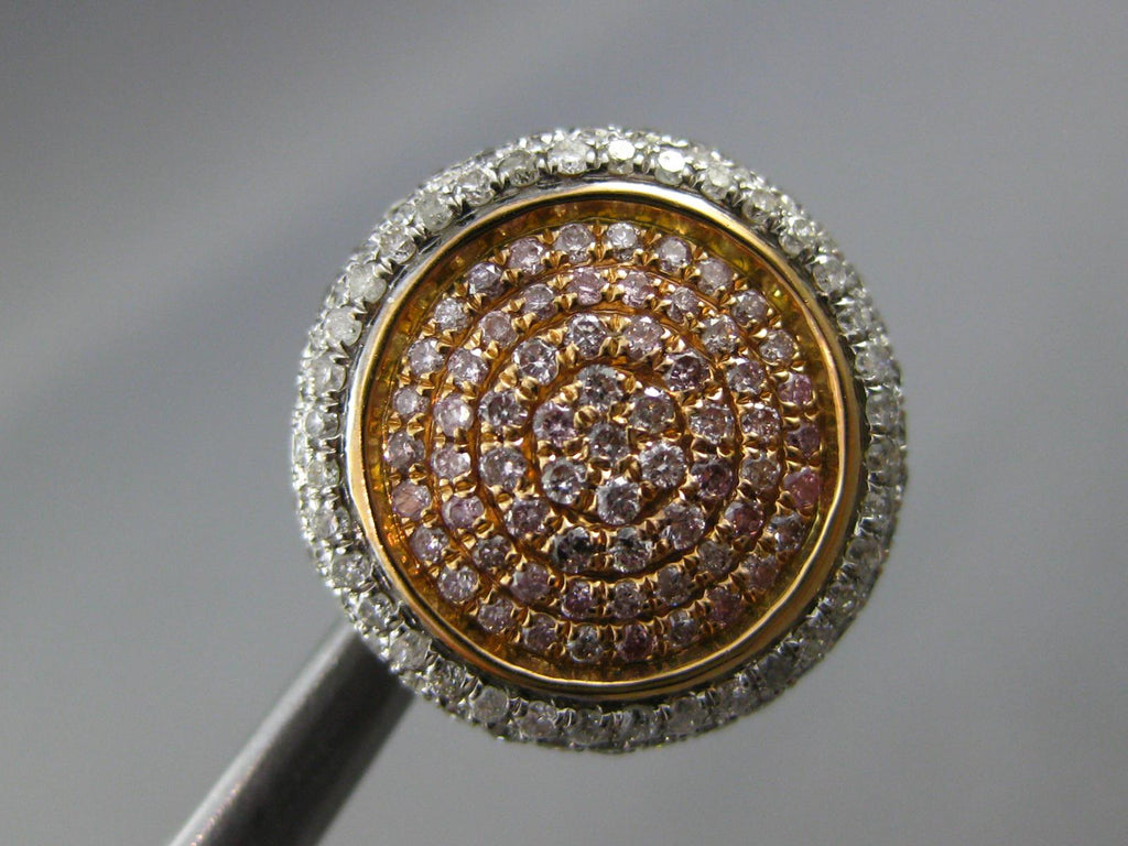 ESTATE LARGE 18KT ROSE GOLD CLIP ON EARRINGS. 3D CLUSTER CIRCULAR DESIGN. WHITE DIAMONDS ARE F/G COLOR, VS CLARITY .79 CARATS. PINK DIAMONDS ARE .56 CARATS. MEASURES 15mm X 15mm. WRITTEN APPRAISAL AVAILABLE. COMES IN A PRESENTABLE GIFT BOX.