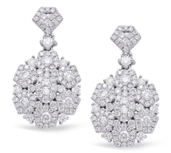 ESTATE LARGE 14KT WHITE GOLD FUN HANGING EARRINGS. 3D MULTI FLOWER DESIGN. DIAMONDS ARE F/G COLOR, VSSI CLARITY 1.43 CARATS. MEASURES 12mm WIDE. WRITTEN APPRAISAL AVAILABLE. COMES IN A PRESENTABLE GIFT BOX.