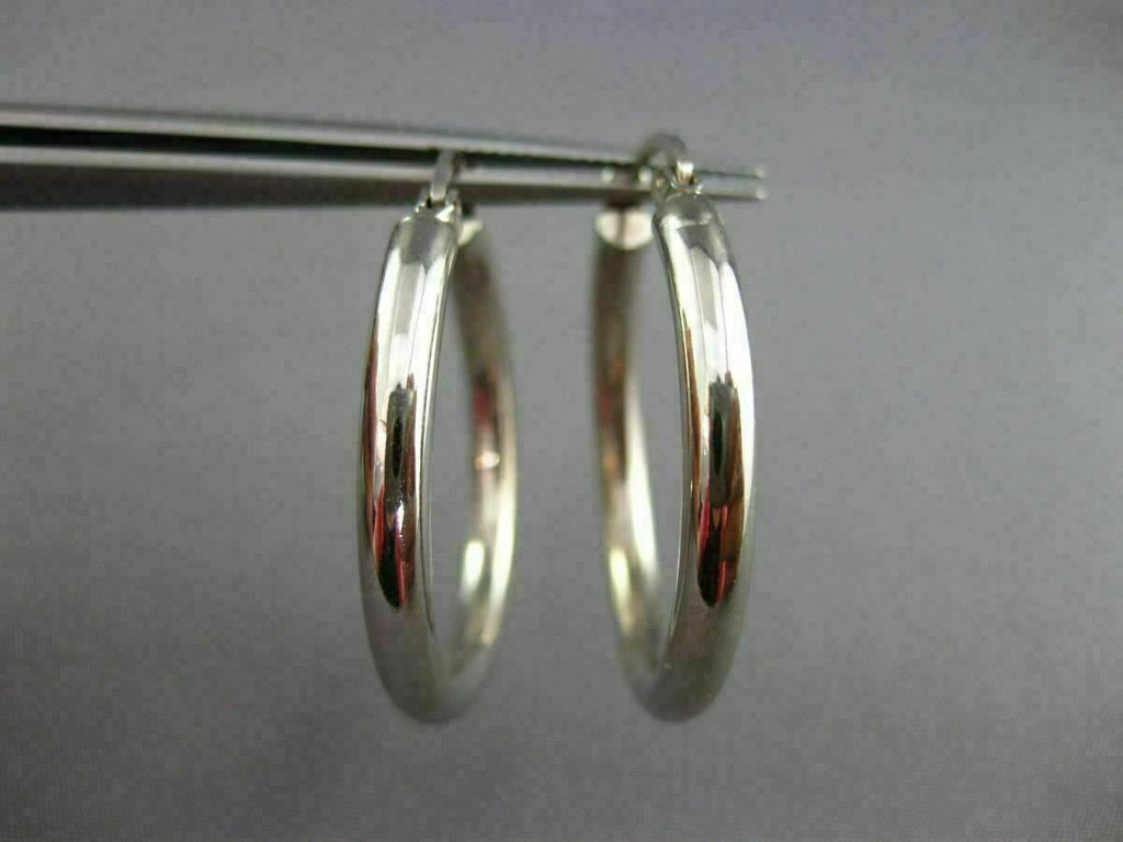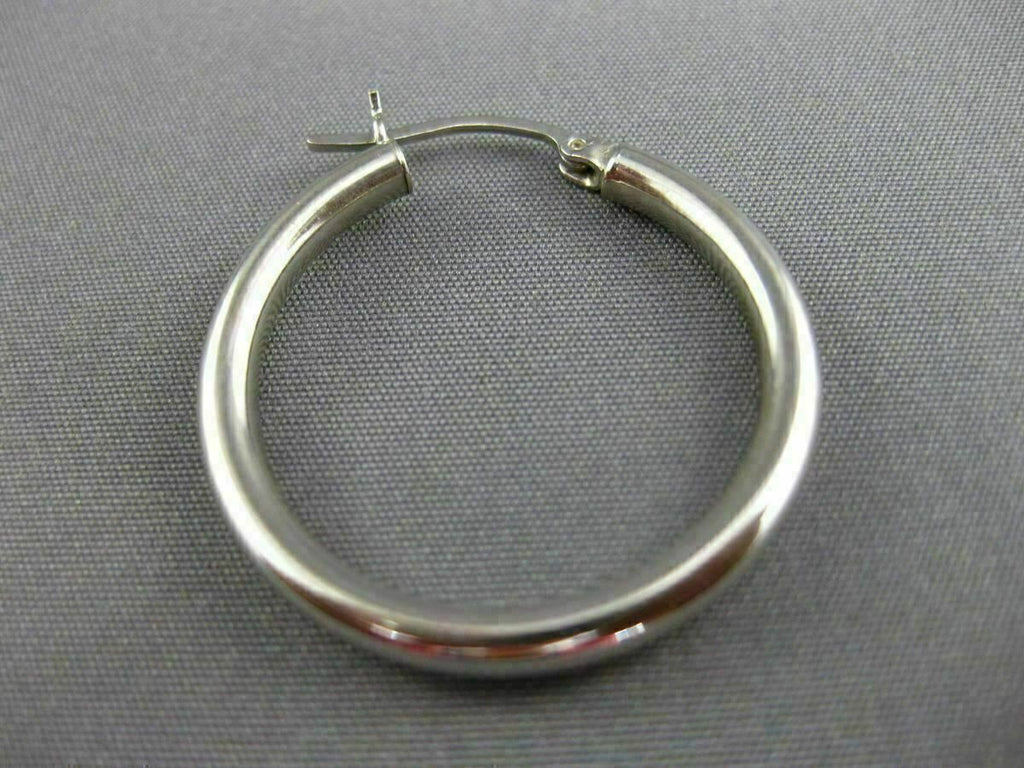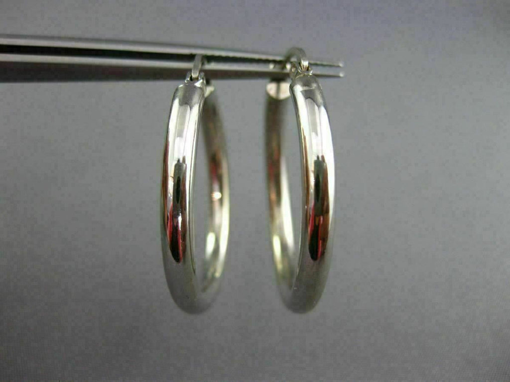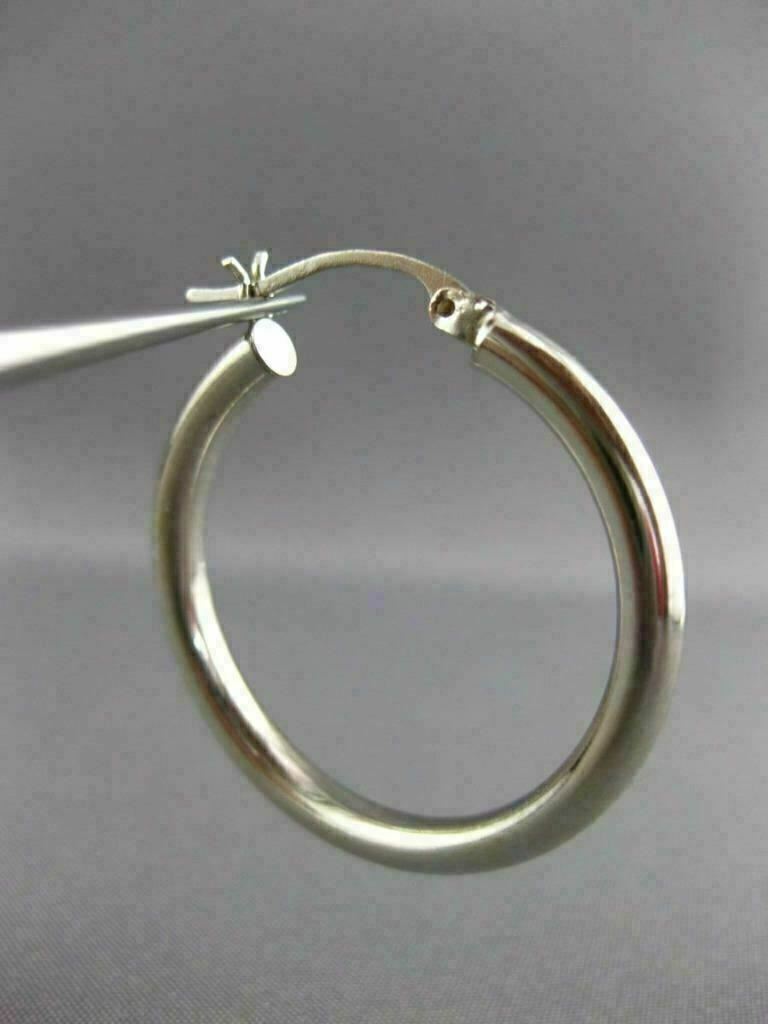 ESTATE LARGE 14KT WHITE GOLD 3D CLASSIC SHINY HANGING HOOP EARRINGS 3mm #25677