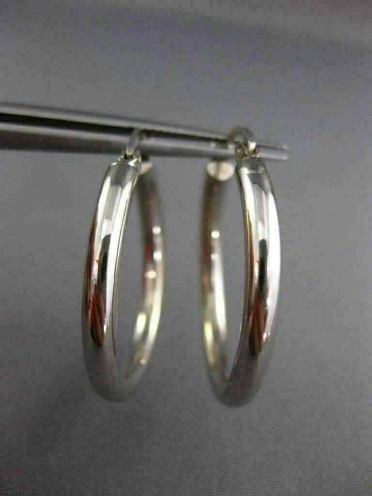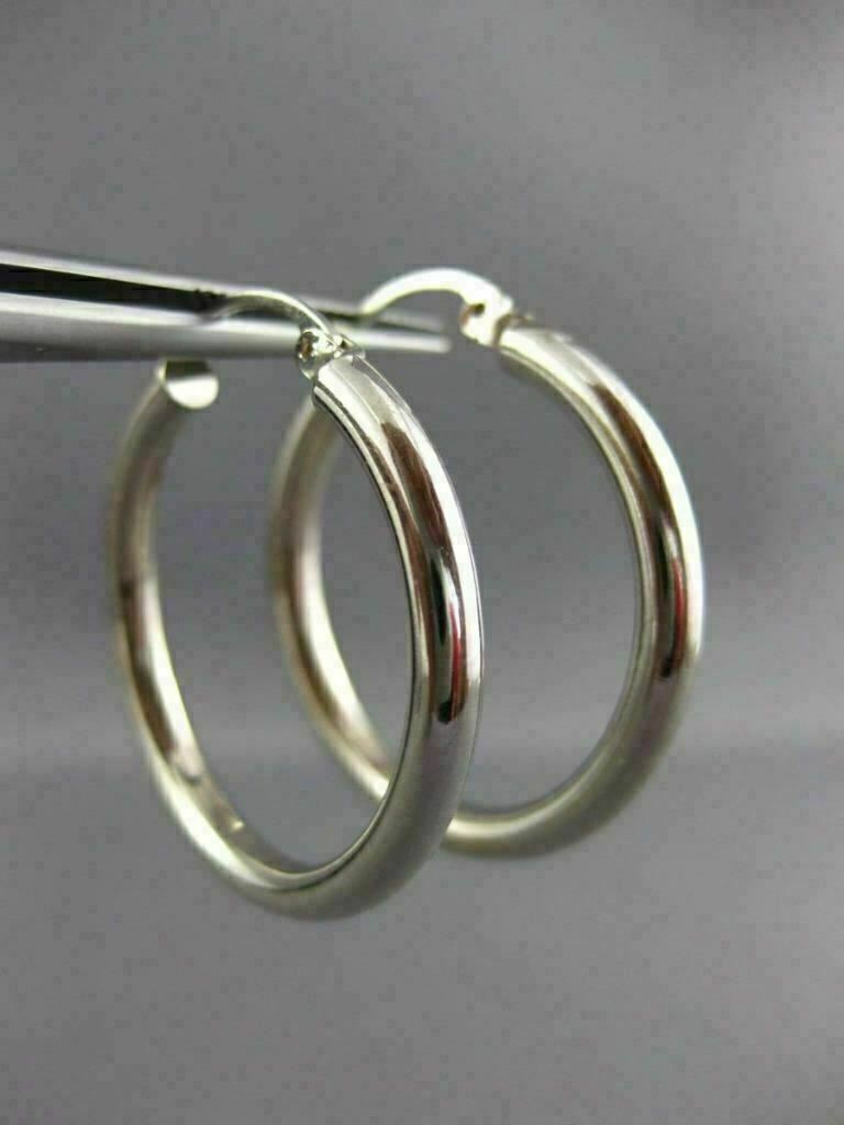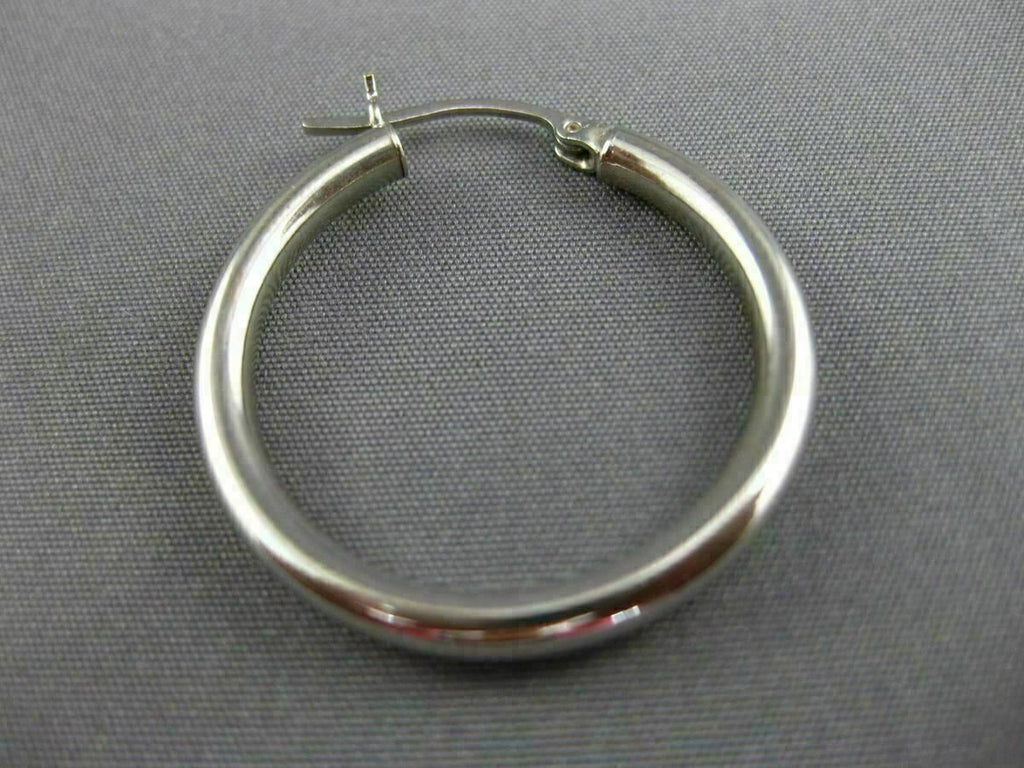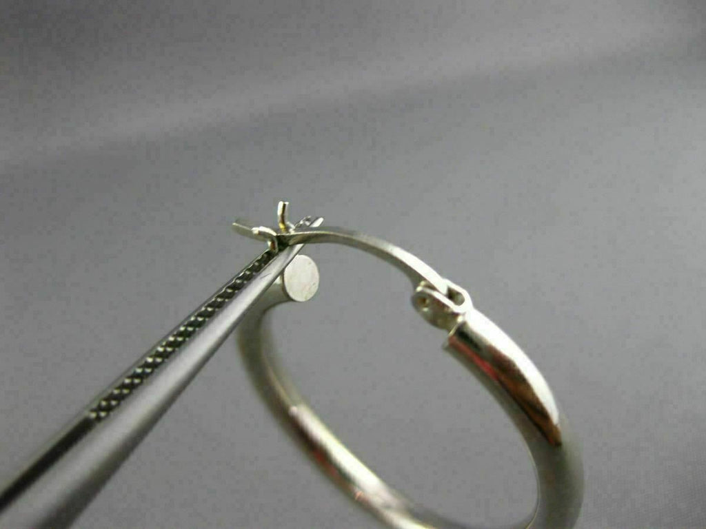 ESTATE LARGE 14KT WHITE GOLD 3D CLASSIC SHINY HANGING HOOP EARRINGS 3mm #25677