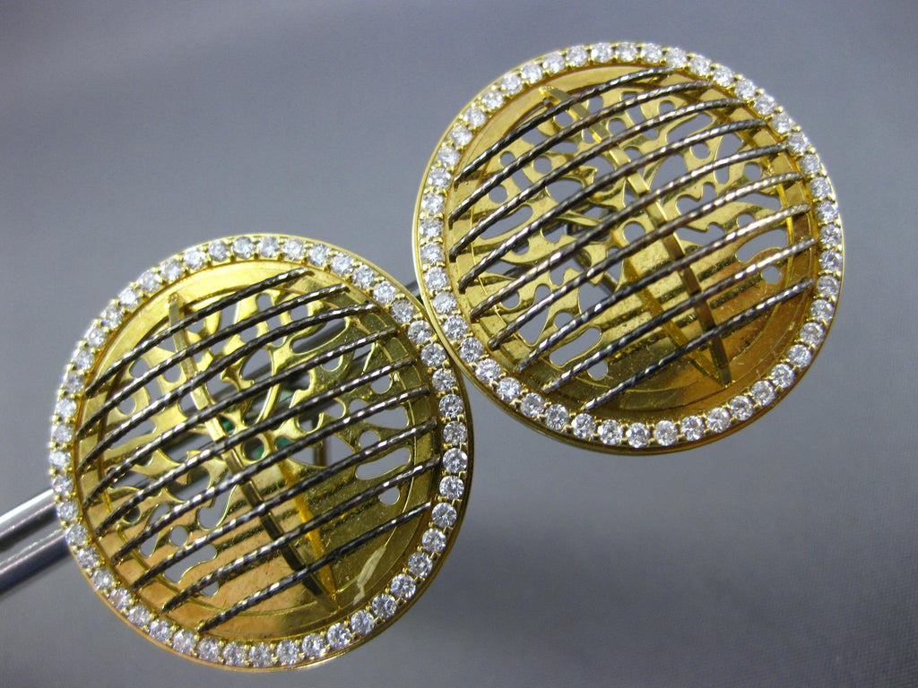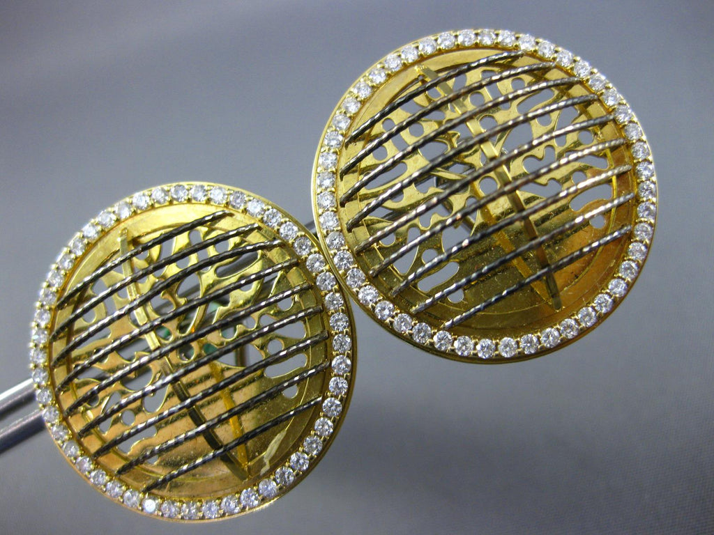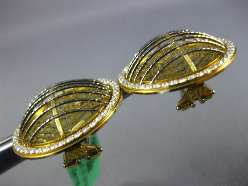 ESTATE LARGE 18KT YELLOW GOLD CLIP ON FUN EARRINGS. 3D CIRCULAR GLOBE DESIGN. DIAMONDS ARE F/G COLOR, VSSI CLARITY 1.51 CARATS. MEASURES  26.5MM X 26.5MM. WRITTEN APPRAISAL AVAILABLE. COMES IN A PRESENTABLE GIFT BOX.