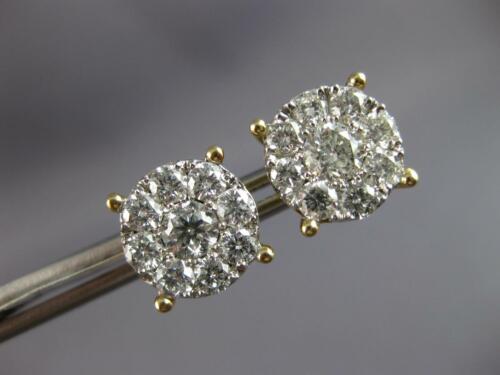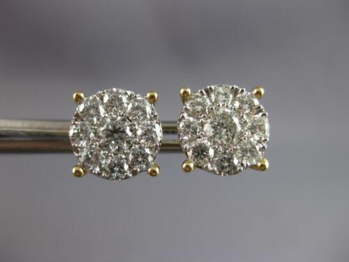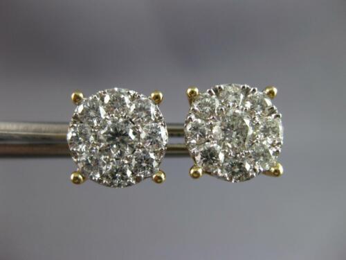 ESTATE LARGE 2.01CT DIAMOND 14KT YELLOW GOLD ROUND CLUSTER FLOWER STUD EARRINGS