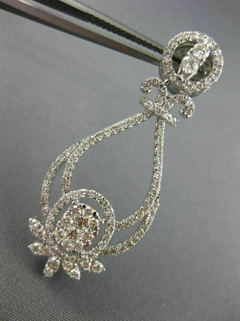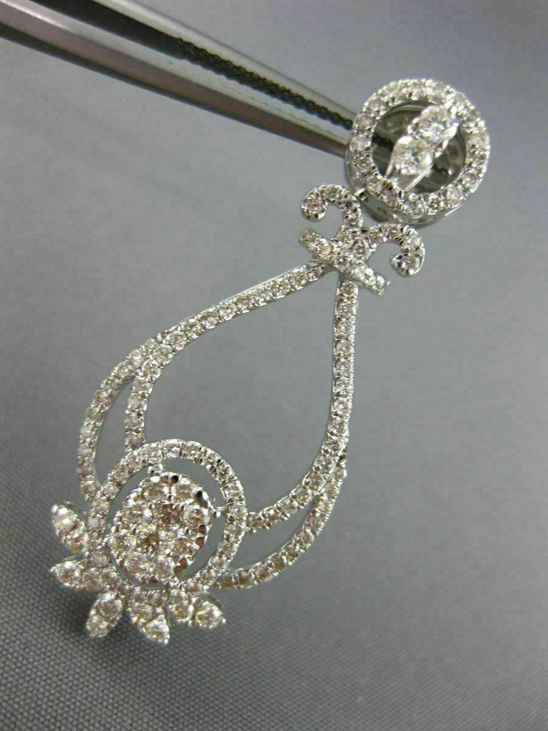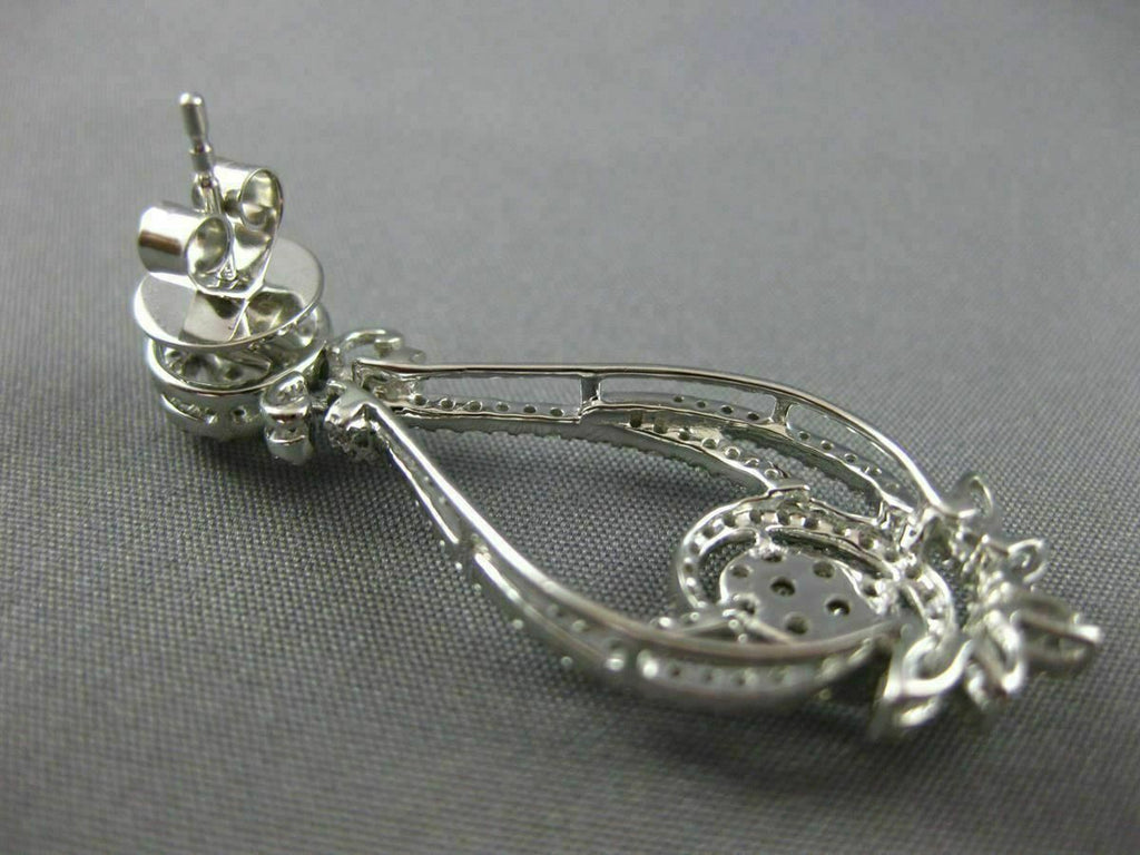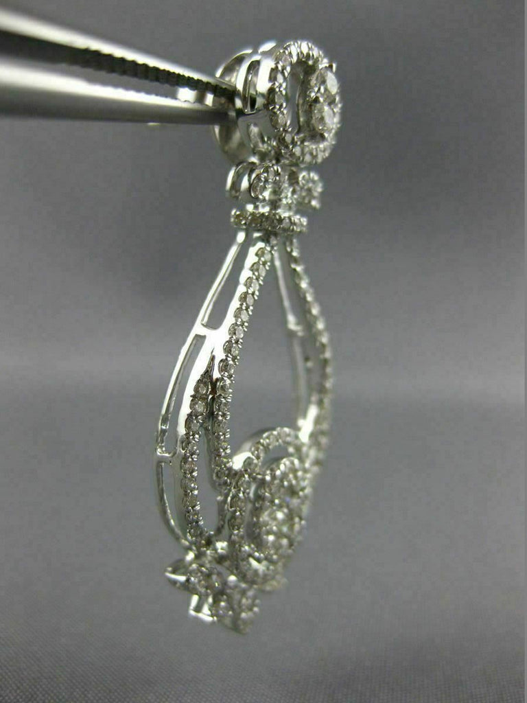 ESTATE LARGE 2.02CT DIAMOND 14K WHITE GOLD OPEN FILIGREE FLOWER HANGING EARRINGS