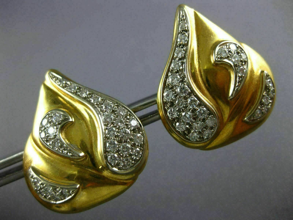 ESTATE LARGE 2.0CT DIAMOND 14K 2 TONE GOLD 3D CLASSIC TEAR DROP CLIP ON EARRINGS