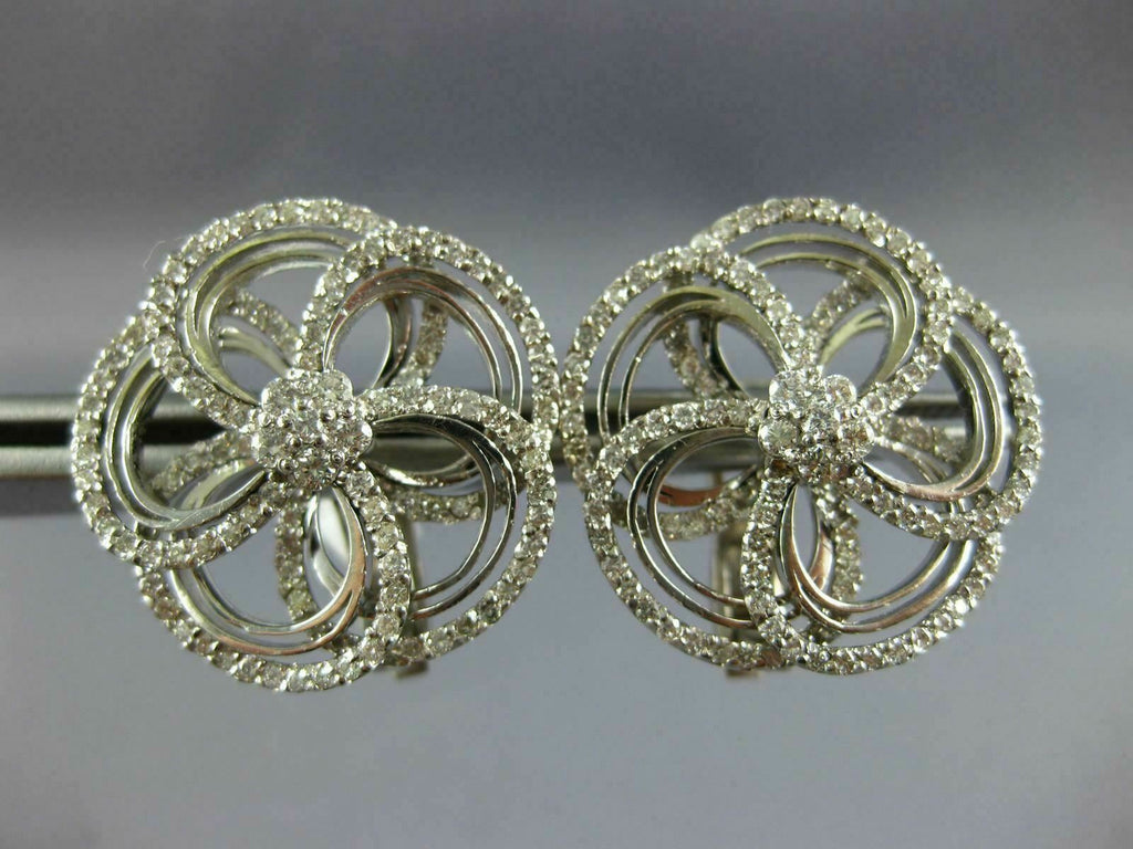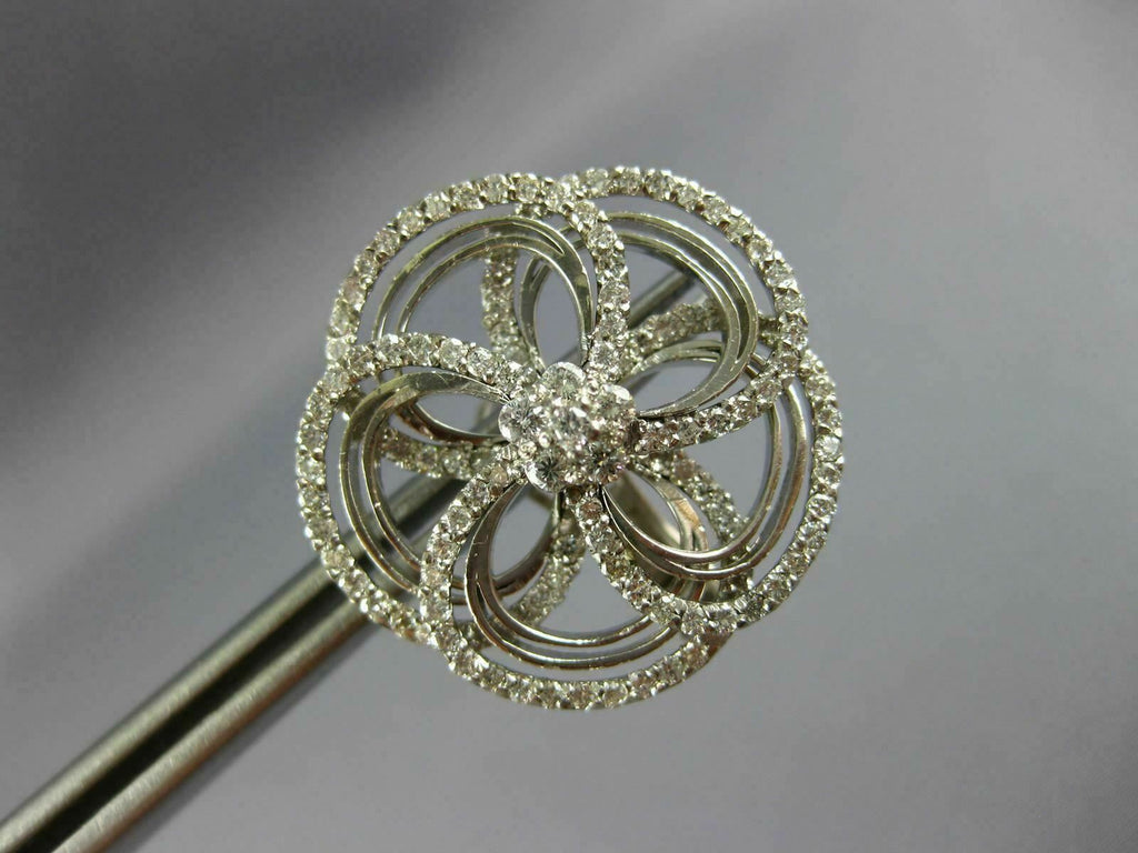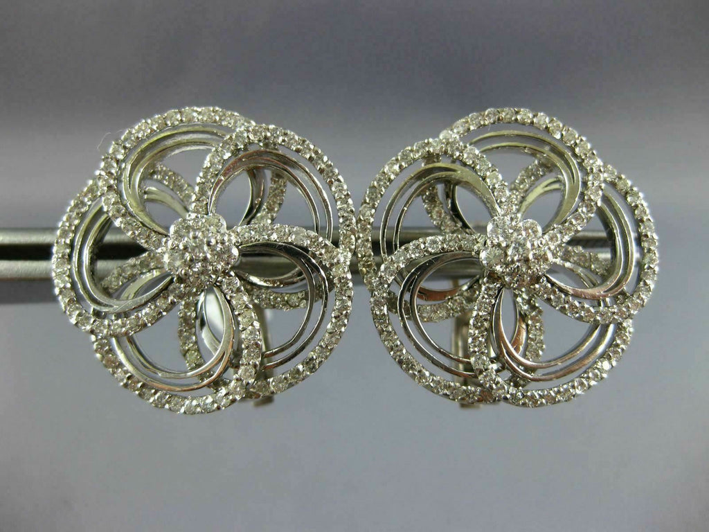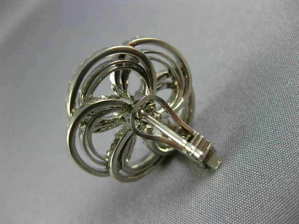 ESTATE LARGE 2.0CT DIAMOND 14KT WHITE GOLD ROUND FLOWER CLIP ON EARRINGS #21749