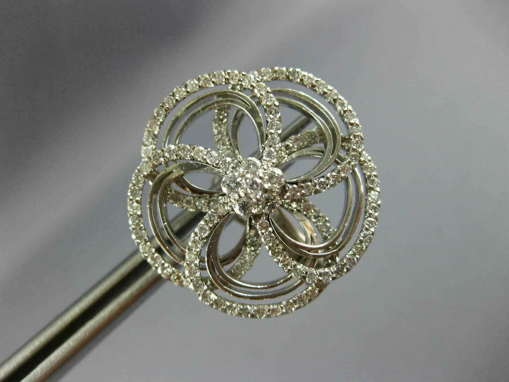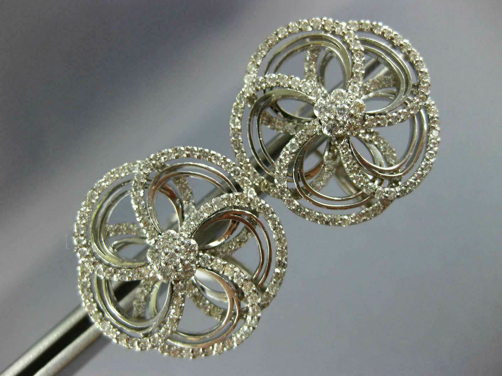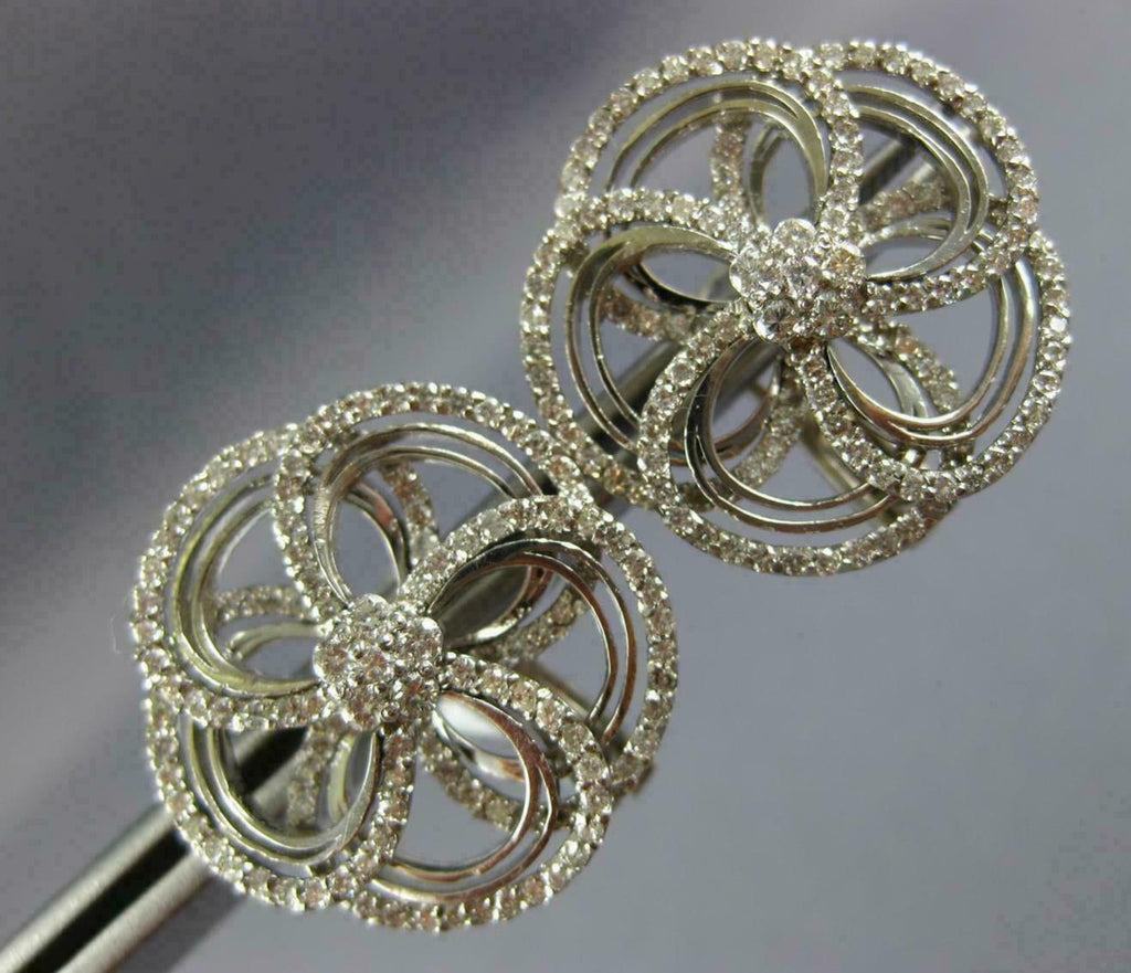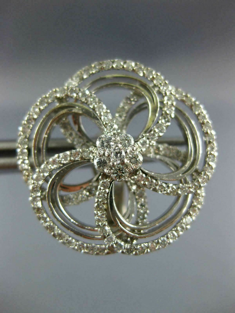 ESTATE LARGE 2.0CT DIAMOND 14KT WHITE GOLD ROUND FLOWER CLIP ON EARRINGS #21749
