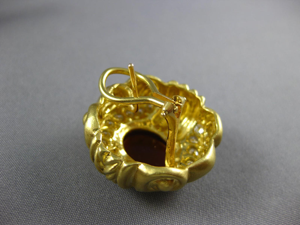 ESTATE LARGE18KT YELLOWGOLD EARRINGS. 3D ROMAN SOLDIERDESIGN. DIAMONDS ARE F/G COLOR, VSSI CLARITY 2.0 CARATS.FEATURES AAA CARNELIAN.MEASURES 26mm. WRITTEN APPRAISAL AVAILABLE. COMES IN A PRESENTABLE GIFT BOX.