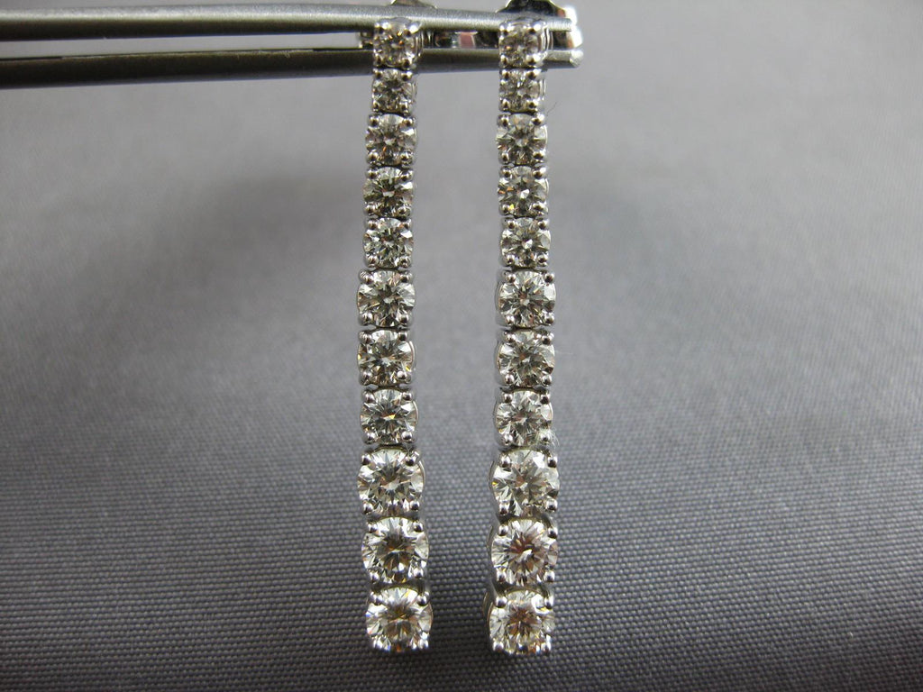 ESTATE LARGE 2.10CT DIAMOND 14KT WHITE GOLD ROUND JOURNEY FLEXIBLE BAR HANGING EARRINGS