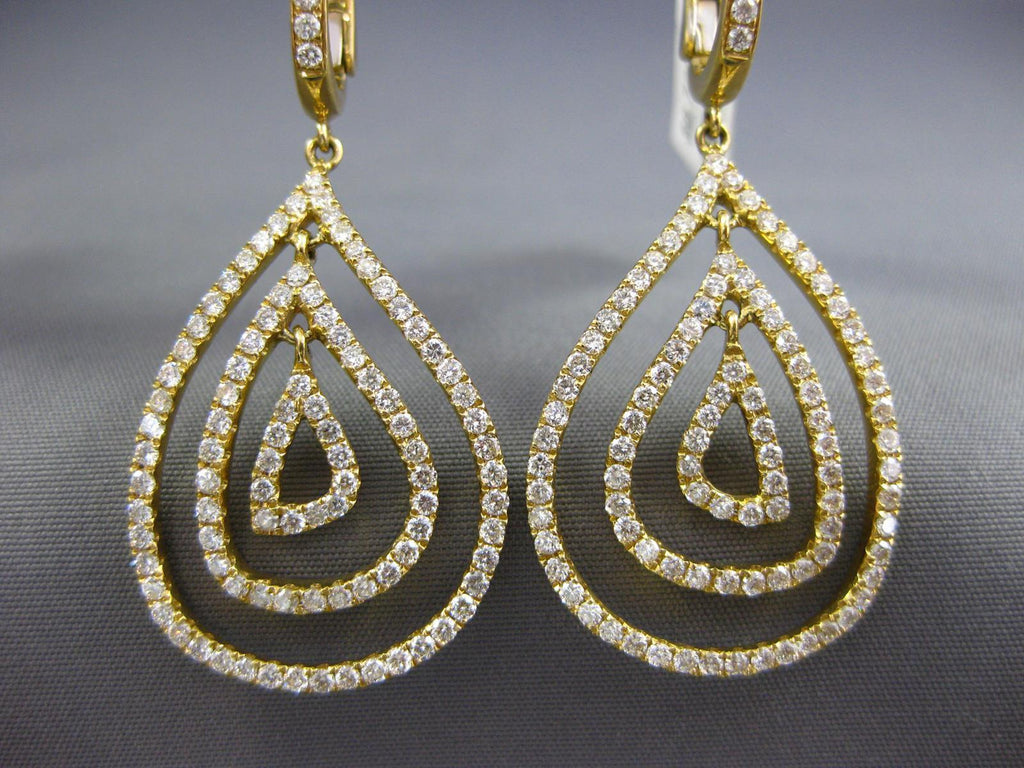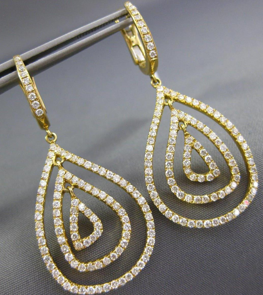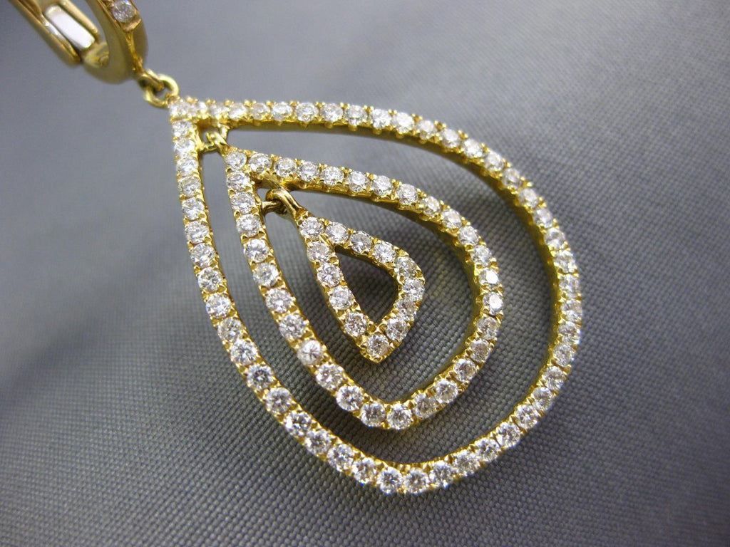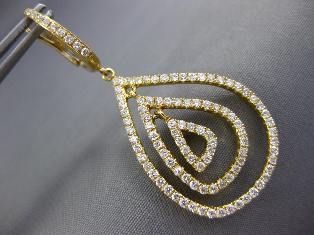 ESTATE LARGE 18KT YELLOWGOLD CLIP ON HANGINGEARRINGS. 3D MULTI ROW TEAR DROPDESIGN. DIAMONDS ARE F/G COLOR, VSSI CLARITY 2.10CARATS.MEASURES 47mm X 20mm.WRITTEN APPRAISAL AVAILABLE. COMES IN A PRESENTABLE GIFT BOX.