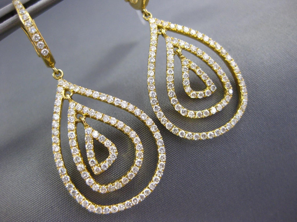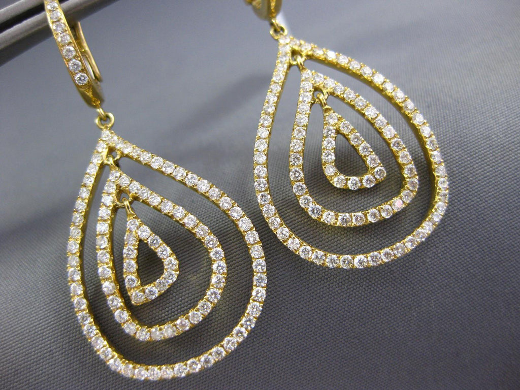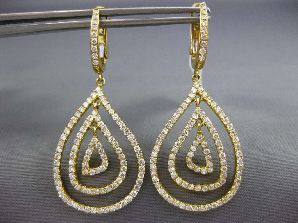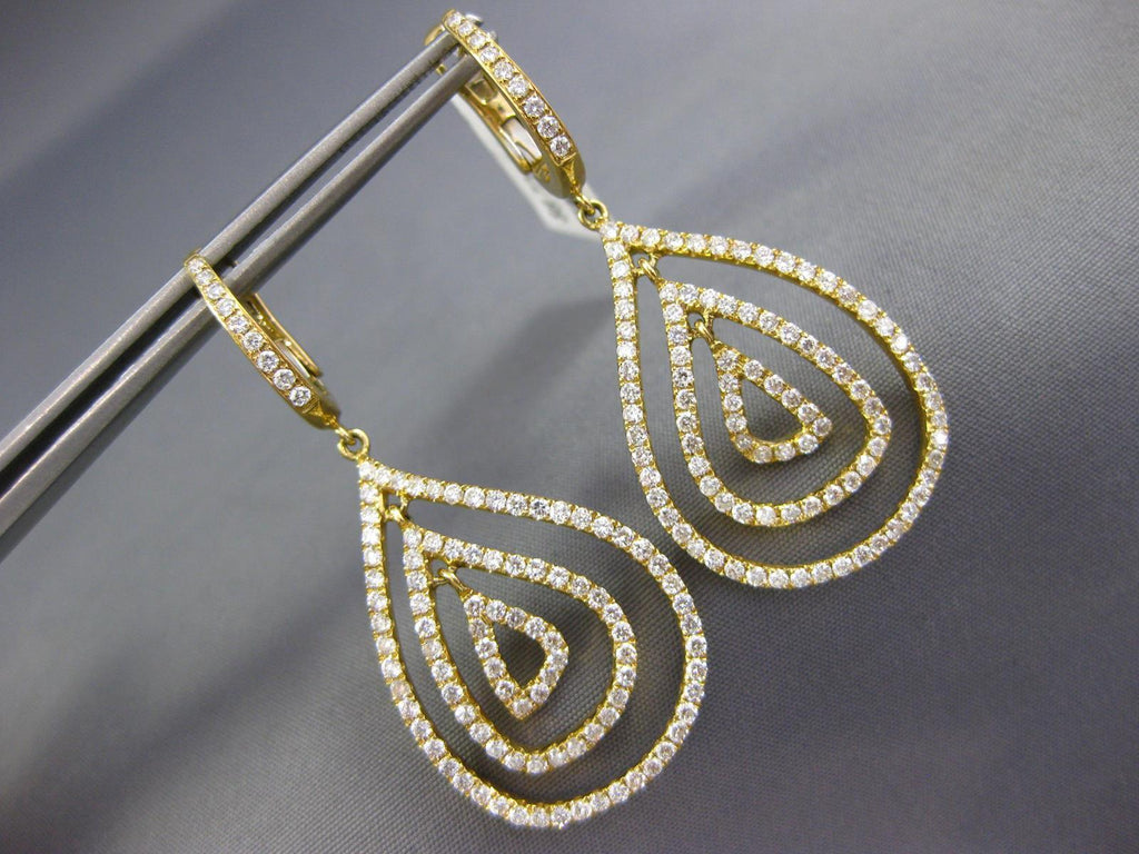 ESTATE LARGE 18KT YELLOWGOLD CLIP ON HANGINGEARRINGS. 3D MULTI ROW TEAR DROPDESIGN. DIAMONDS ARE F/G COLOR, VSSI CLARITY 2.10CARATS.MEASURES 47mm X 20mm.WRITTEN APPRAISAL AVAILABLE. COMES IN A PRESENTABLE GIFT BOX.