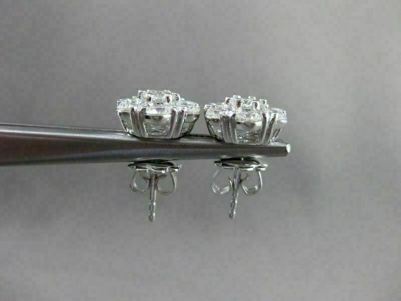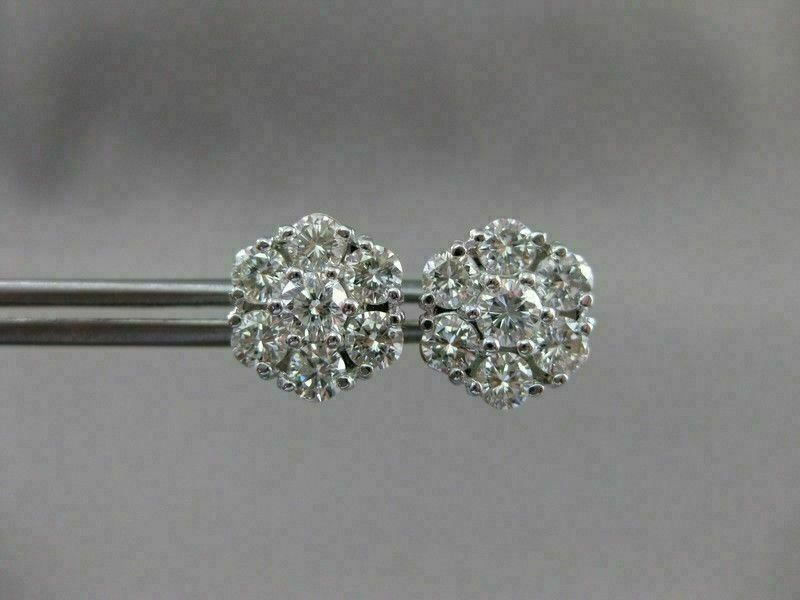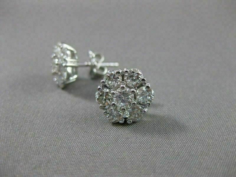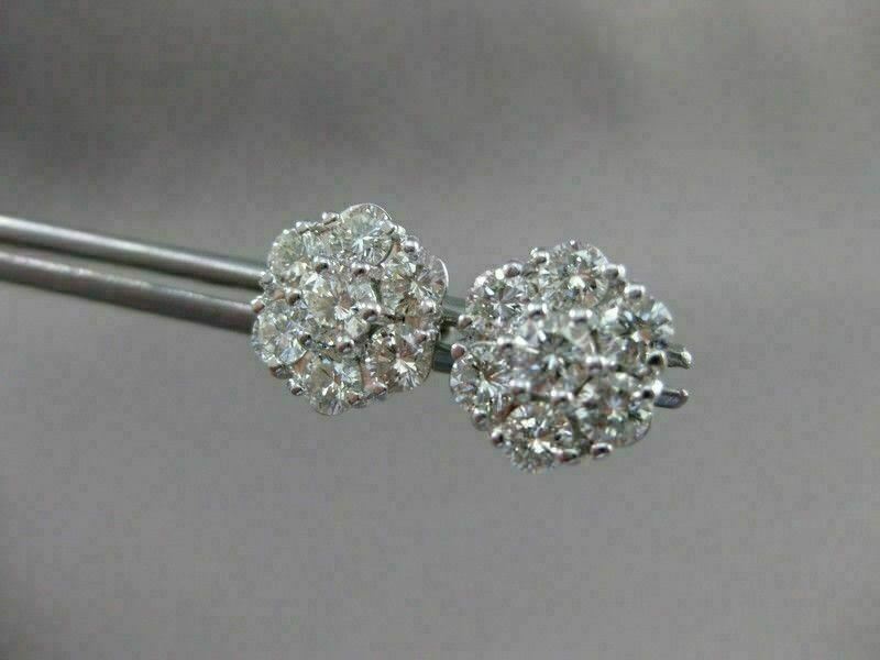 ESTATE LARGE 2.17CT DIAMOND 14KT WHITE GOLD FLOWER CLUSTER EARRINGS CUTE! #2860