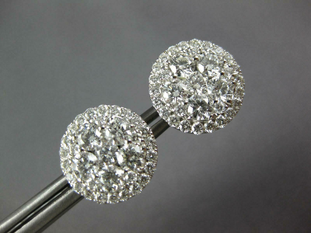 ESTATE LARGE 2.18CT DIAMOND 18KT WHITE GOLD 3D CLUSTER FLOWER HALO STUD EARRINGS