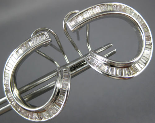 ESTATE LARGE 18KT WHITE GOLD CLIP ON EARRINGS. 3D CLASSIC SIDE WAY HOOP DESIGN. BAGUETTE DIAMONDS ARE F/G COLOR, VSSI CLARITY 2.20 CARATS. MEASURES 24mm X 20mm. WRITTEN APPRAISAL AVAILABLE. COMES IN A PRESENTABLE GIFT BOX.