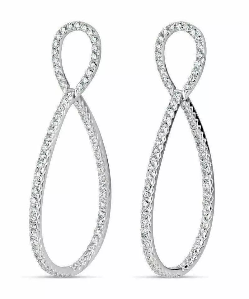 ESTATE LARGE 2.25CT DIAMOND 18KT WHITE GOLD LOVE KNOT INFINITY HANGING EARRINGS