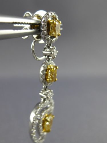 ESTATE LARGE 18KT WHITE AND YELLOW GOLD HANGING EARRINGS. 3D TRIPLE HEART CLASSIC DESIGN. DIAMONDS ARE F/G COLOR, VSSI CLARITY .98 CARATS. FANCY YELLOW DIAMONDS ARE 1.36 CARATS. MEASURES 34mm X 13mm. WRITTEN APPRAISAL AVAILABLE. COMES IN A PRESENTABLE GIFT BOX.