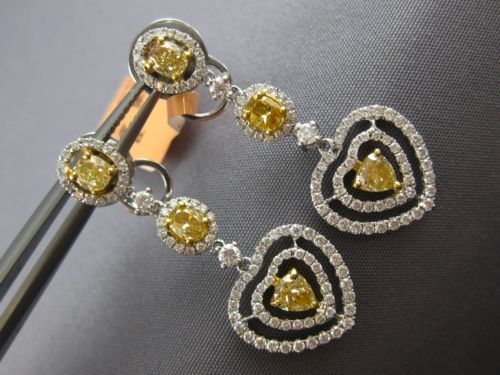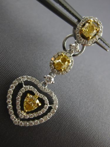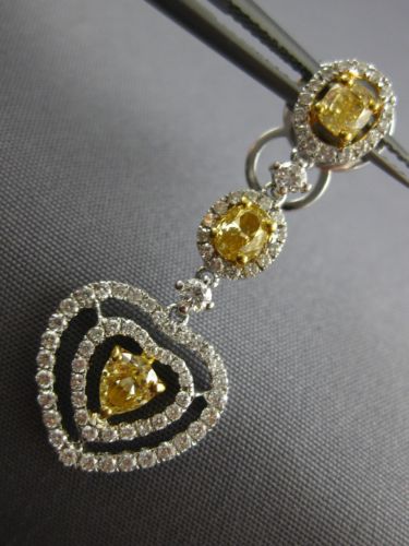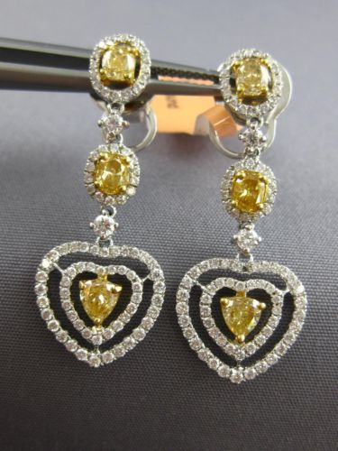 ESTATE LARGE 2.34CT WHITE & FANCY YELLOW DIAMOND 18KT 2 TONE GOLD HEART EARRINGS