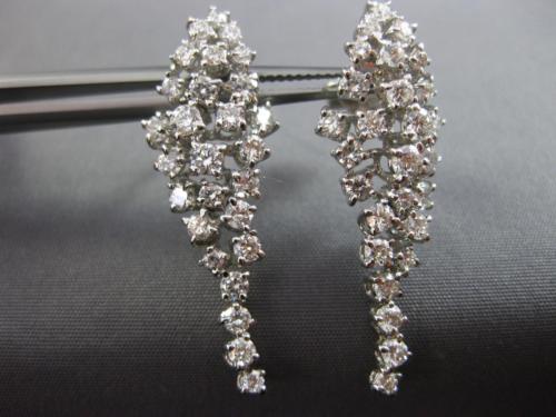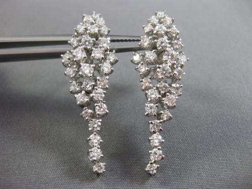 ESTATE LARGE 2.35CT DIAMOND 14KT WHITE GOLD 3D CLUSTER LEAF HANGING EARRINGS