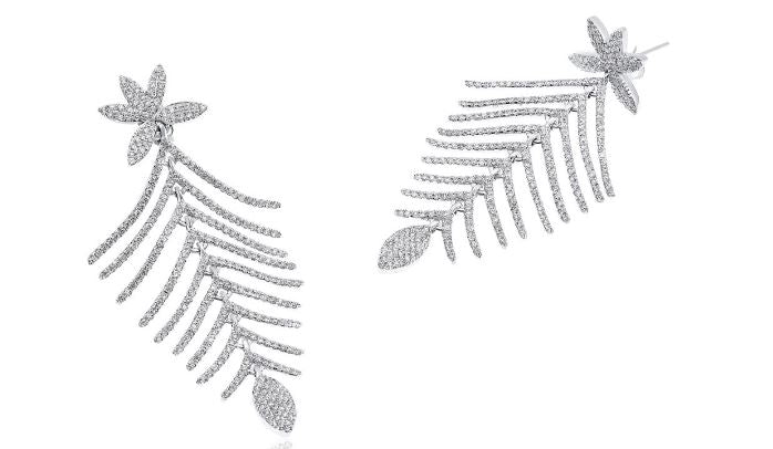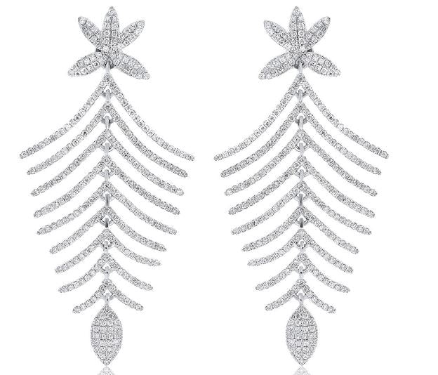 ESTATE LARGE 18KT WHITE GOLD FUN HANGINGEARRINGS. 3D FLOWER DESIGN. DIAMONDS ARE F/G COLOR, VSSI CLARITY 2.35 CARATS. WRITTEN APPRAISAL AVAILABLE. COMES IN A PRESENTABLE GIFT BOX.