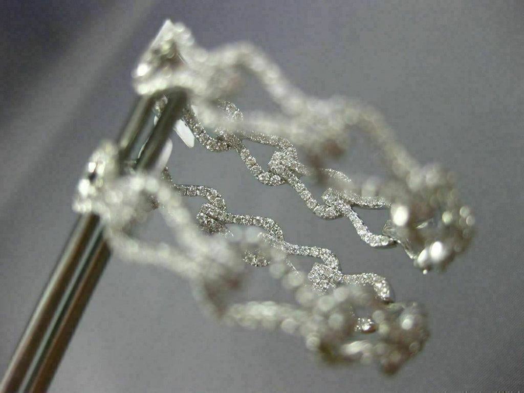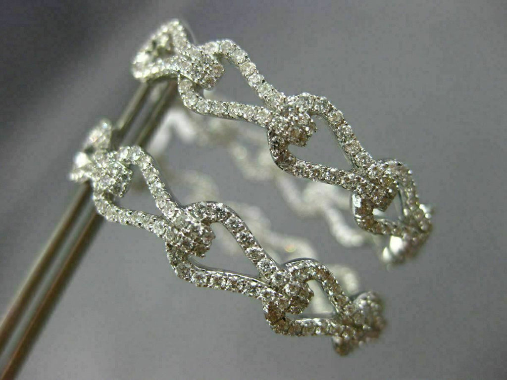 ESTATE LARGE 18KT WHITE GOLD HOOP EARRINGS. 3D DOUBLE SIDED LOVE KNOT DESIGN. DIAMONDS ARE F/G COLOR, VSSI CLARITY 2.37 CARATS. MEASURES 34MM X 6MM. WRITTEN APPRAISAL AVAILABLE. COMES IN A PRESENTABLE GIFT BOX.