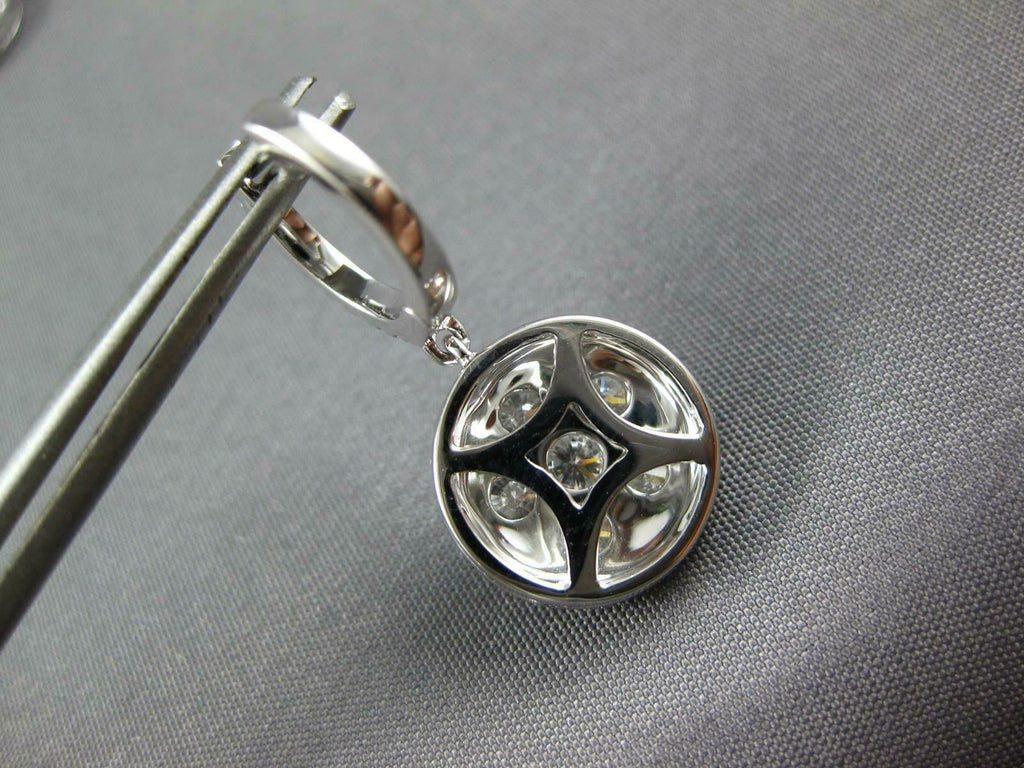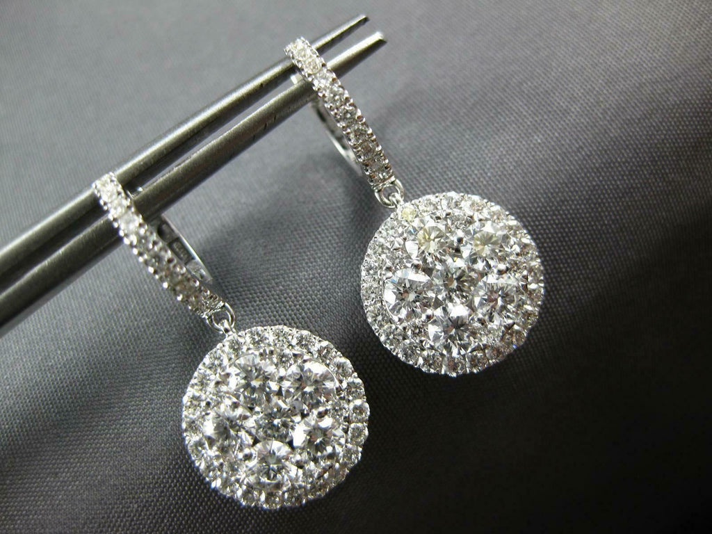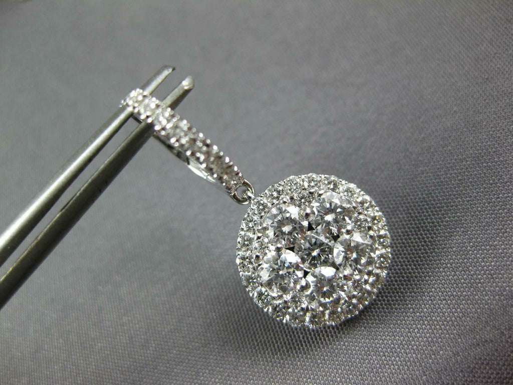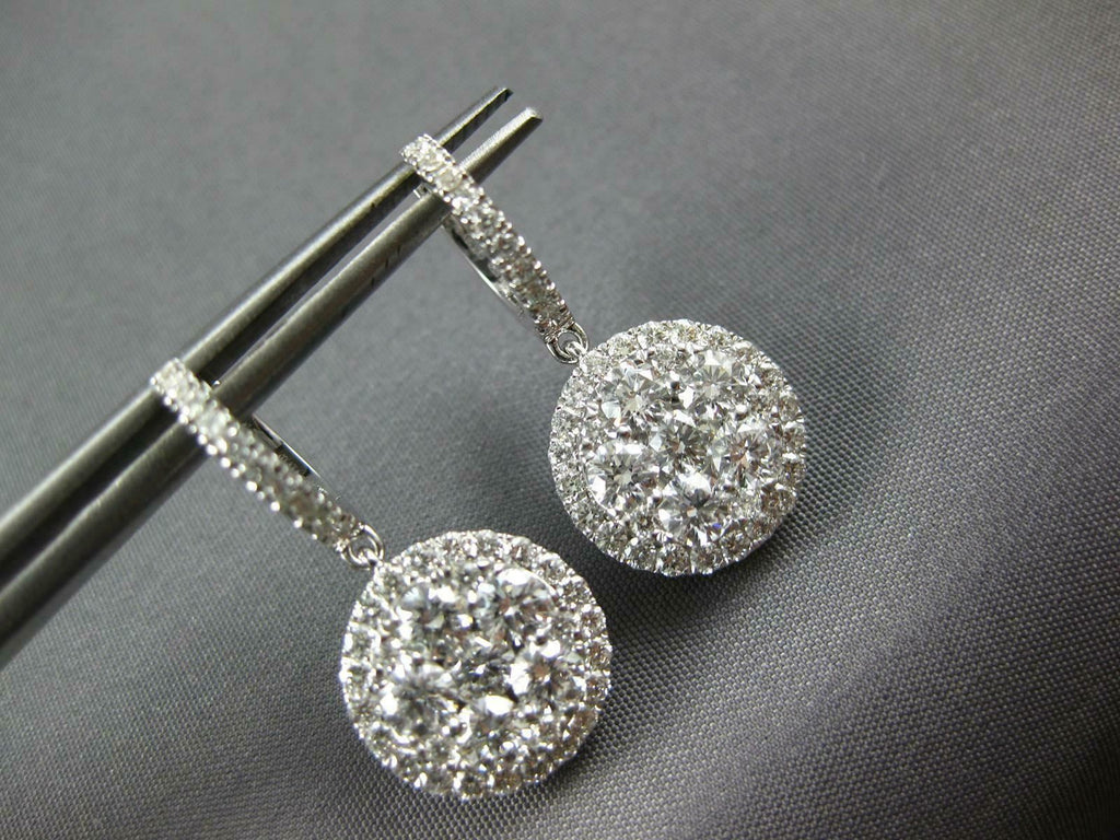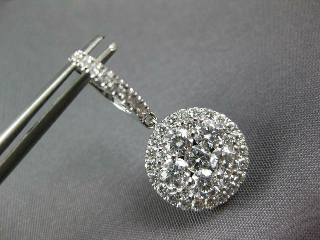 ESTATE LARGE 2.39CT DIAMOND 18K WHITE GOLD ROUND CLUSTER FLOWER HANGING EARRINGS