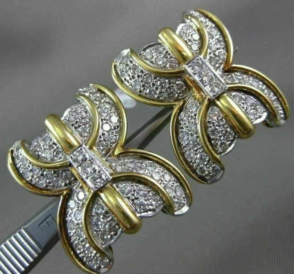 ESTATE LARGE 18KT YELLOW GOLD AND PLATINUM CLIP ON EARRINGS. 3D CLASSIC PAVE X LOVE ITALIAN DESIGN. DIAMONDS ARE F/G COLOR, VSSI CLARITY 2.40 CARATS. MEASURES 22mm X 14mm. WRITTEN APPRAISAL AVAILABLE. COMES IN A PRESENTABLE GIFT BOX