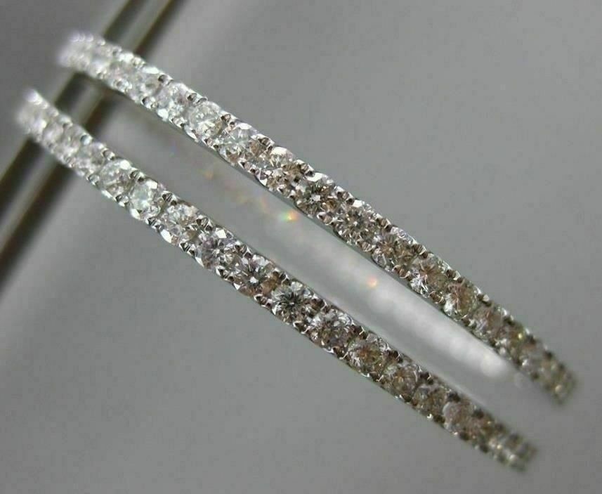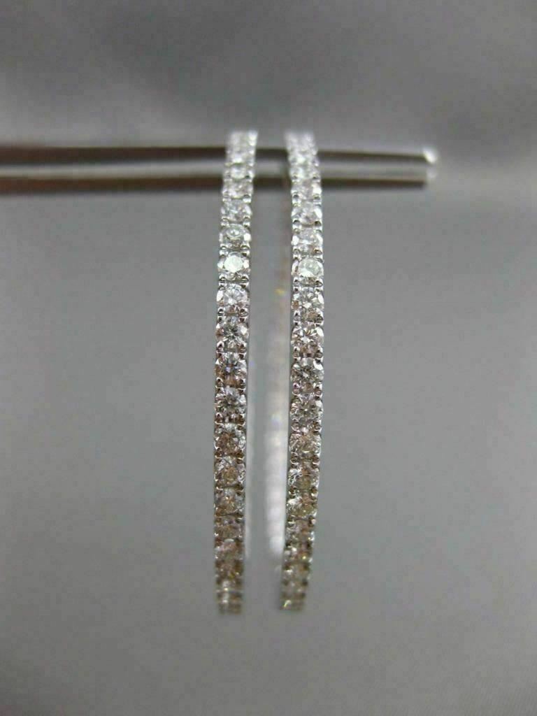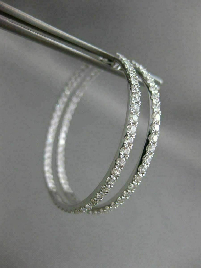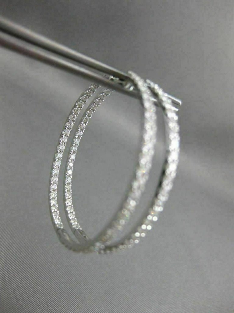 ESTATE LARGE 2.52CT DIAMOND 18K WHITE GOLD 3D DOUBLE SIDED HOOP HANGING EARRINGS