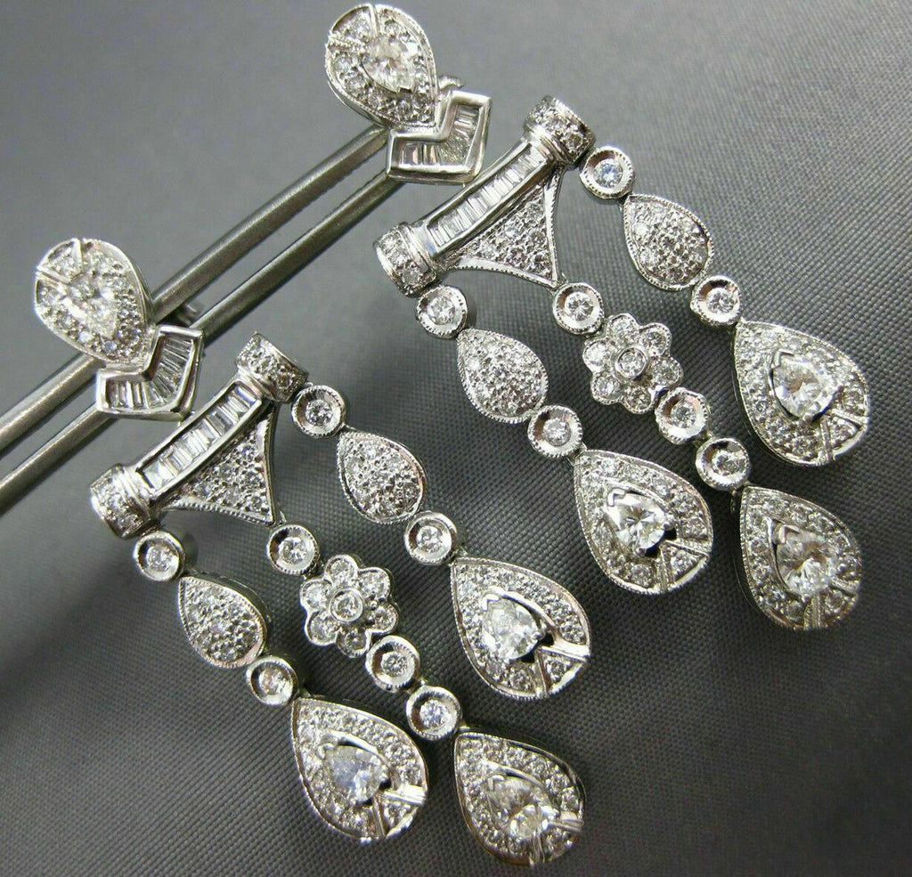 ESTATE LARGE 2.60CT DIAMOND 14K WHITE GOLD TEAR DROP CHANDELIER HANGING EARRINGS