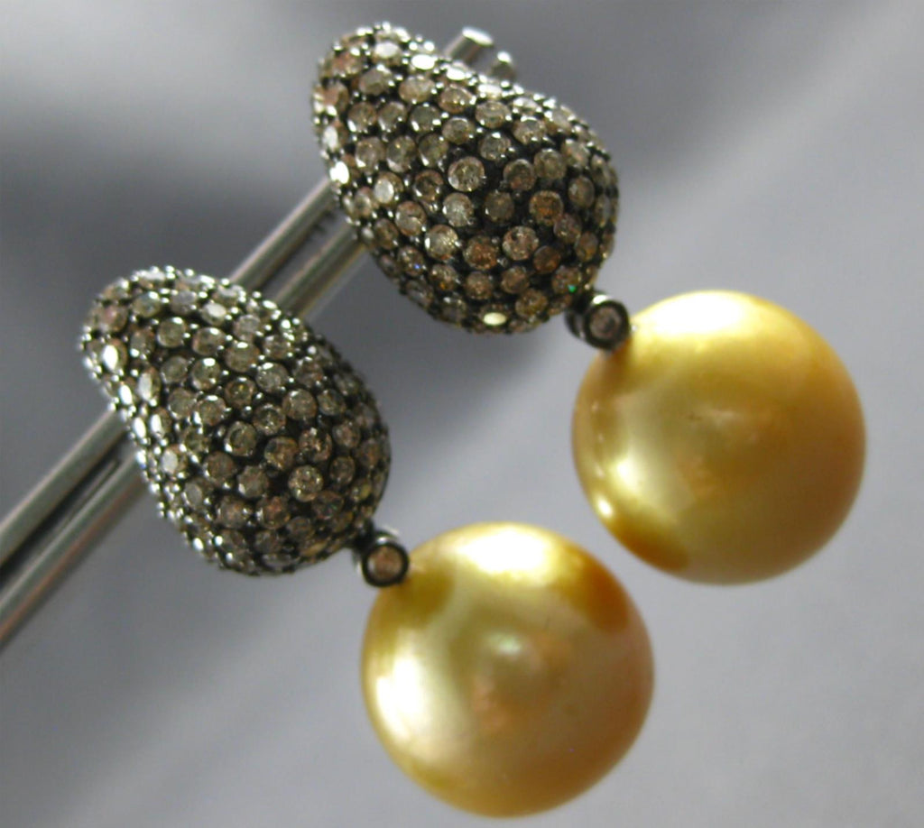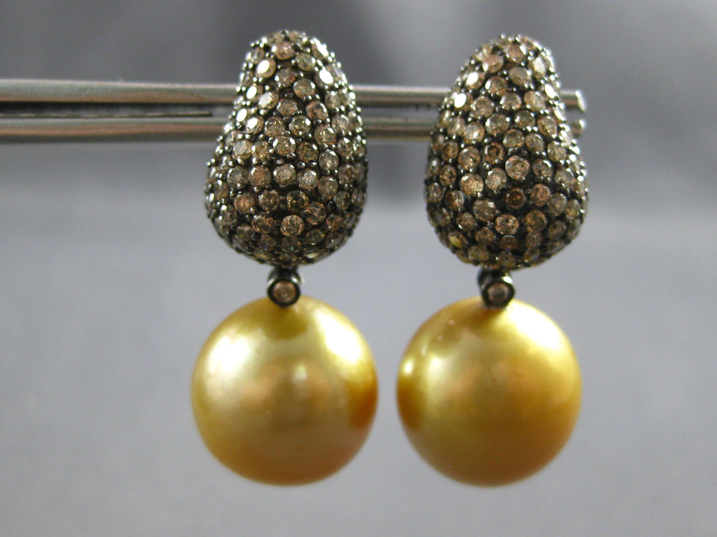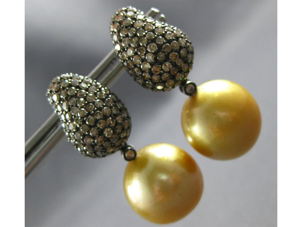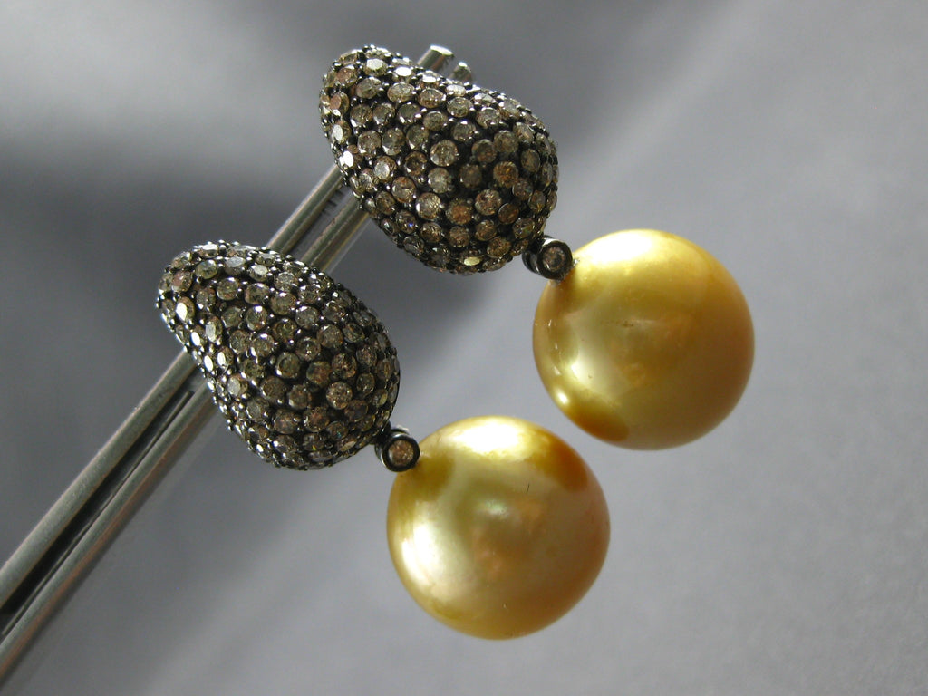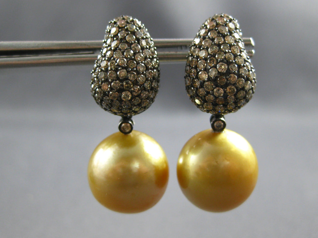 ESTATE LARGE 2.65CT MOCHA DIAMOND & AAA GOLDEN SOUTH SEA PEARL 18KT BLACK GOLD EARRINGS