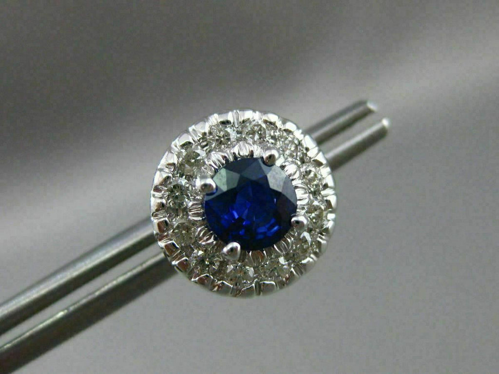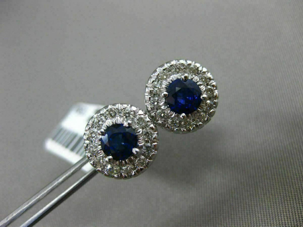 ESTATE LARGE 2.80CT DIAMOND & AAA SAPPHIRE 14KT WHITE GOLD ROUND HALO EARRINGS