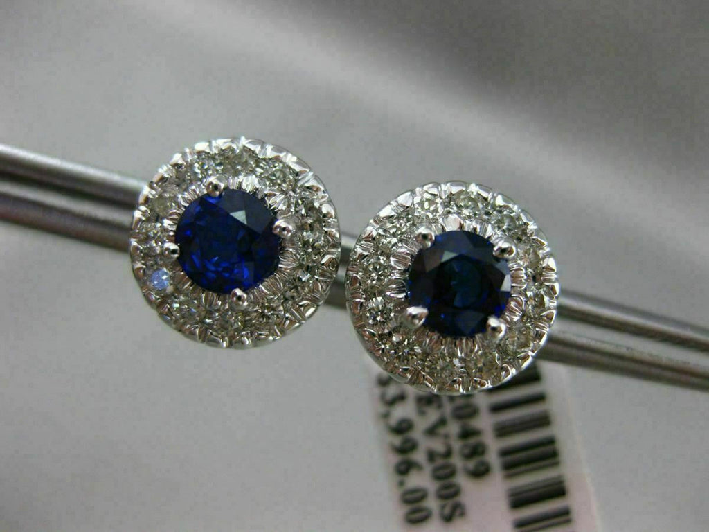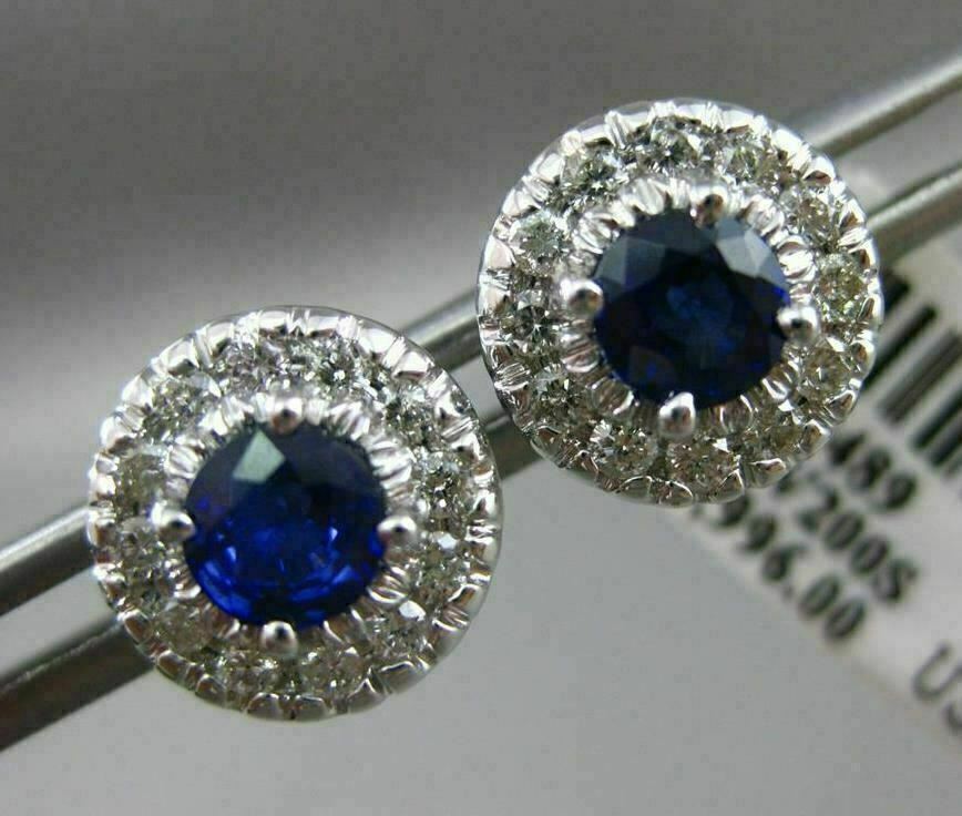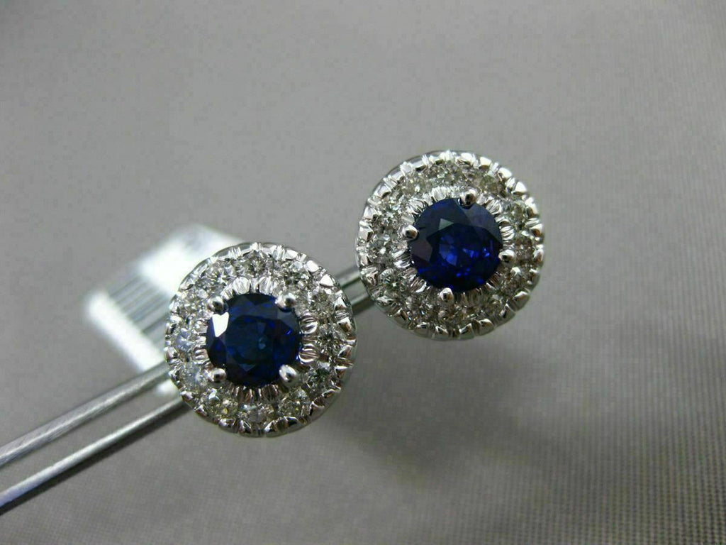 ESTATE LARGE 14KT WHITE GOLD STUD EARRINGS. 3D ROUND CLASSIC DESIGN. DIAMONDS ARE F/G COLOR, VSSI CLARITY .80 CARATS. AAA SAPPHIRE IS 2 CARATS. MEASURES 10MM WIDE. WRITTEN APPRAISAL AVAILABLE. COMES IN A PRESENTABLE GIFT BOX.