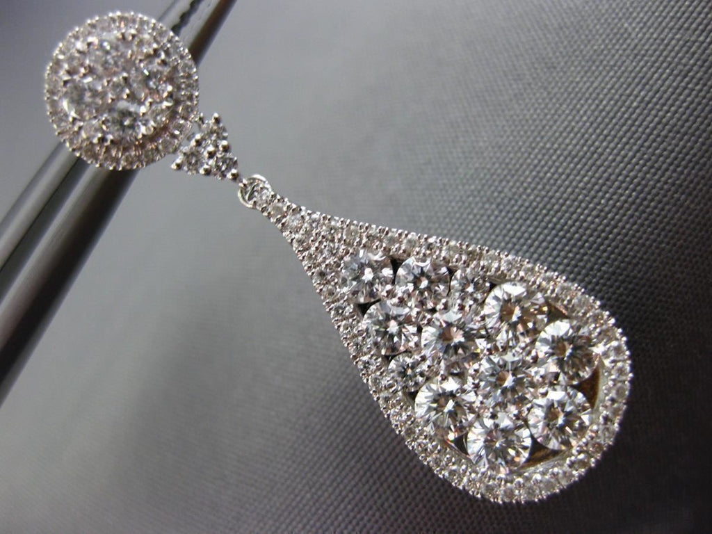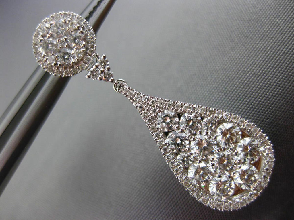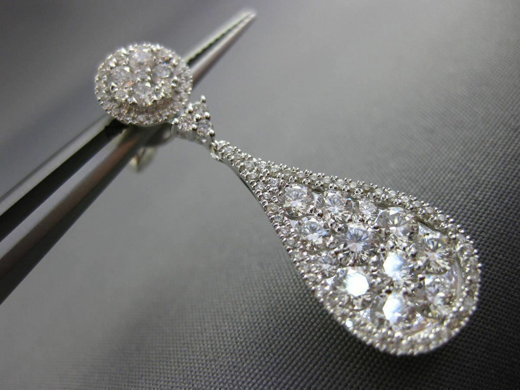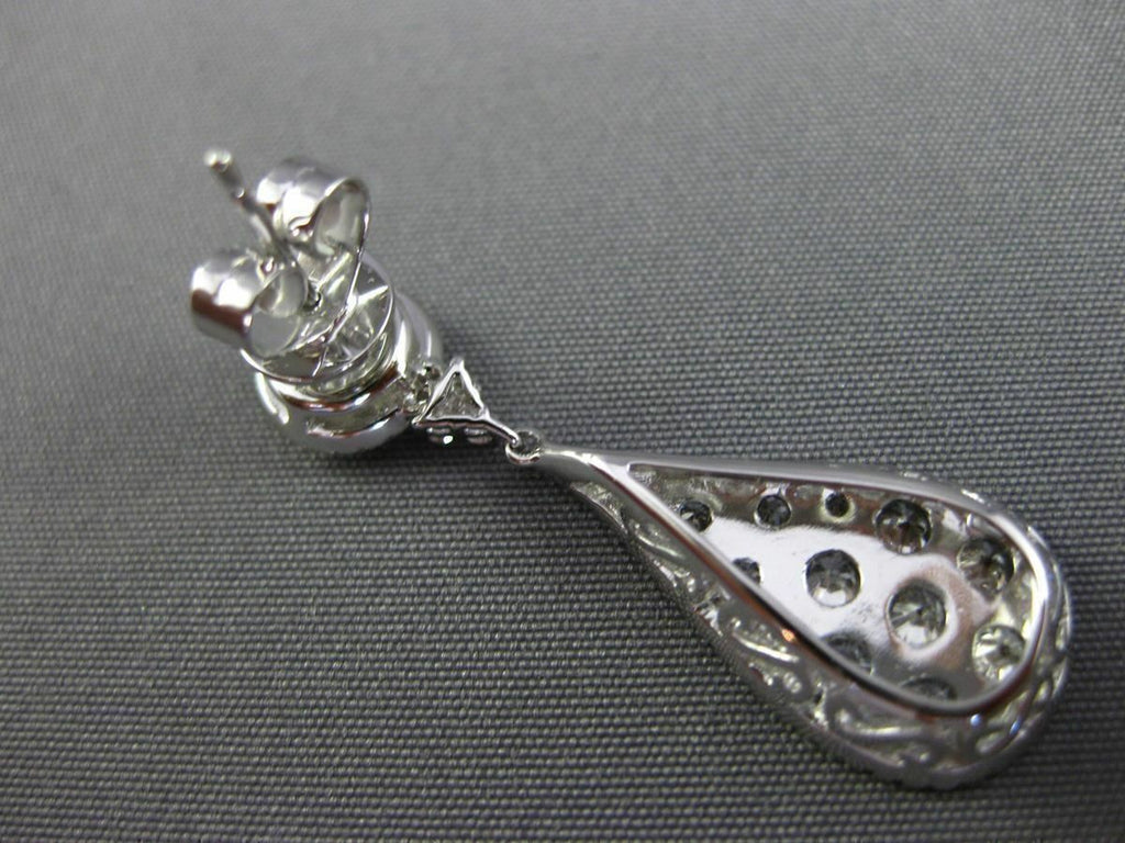 ESTATE LARGE 2.88CT DIAMOND 18K WHITE GOLD 3D CLUSTER TEAR DROP HANGING EARRINGS