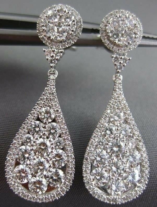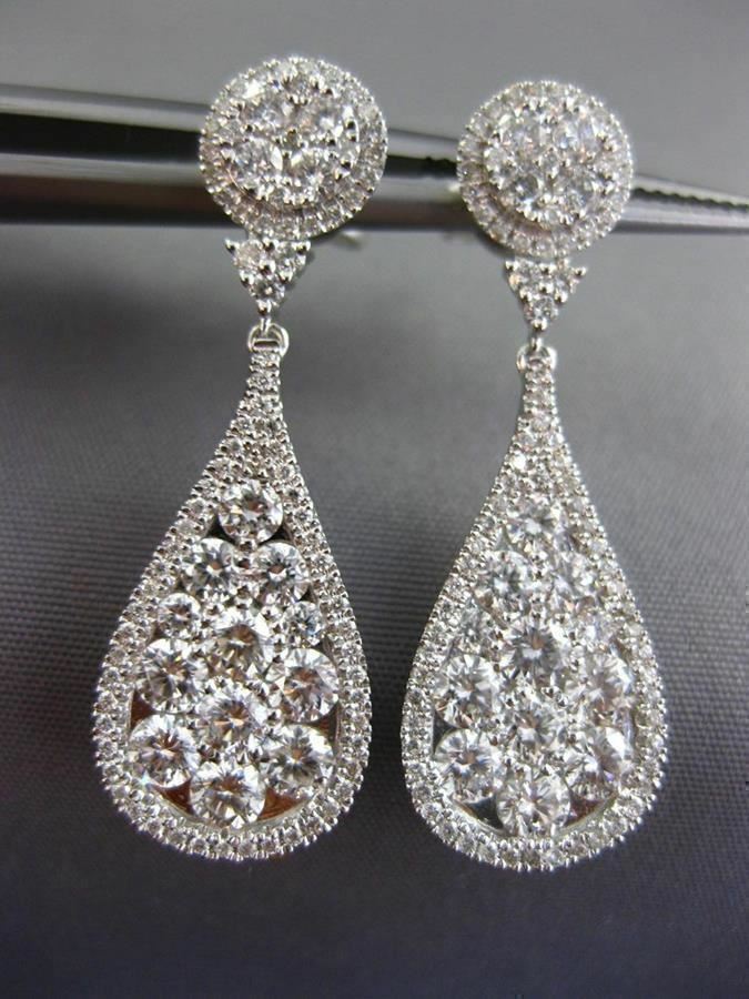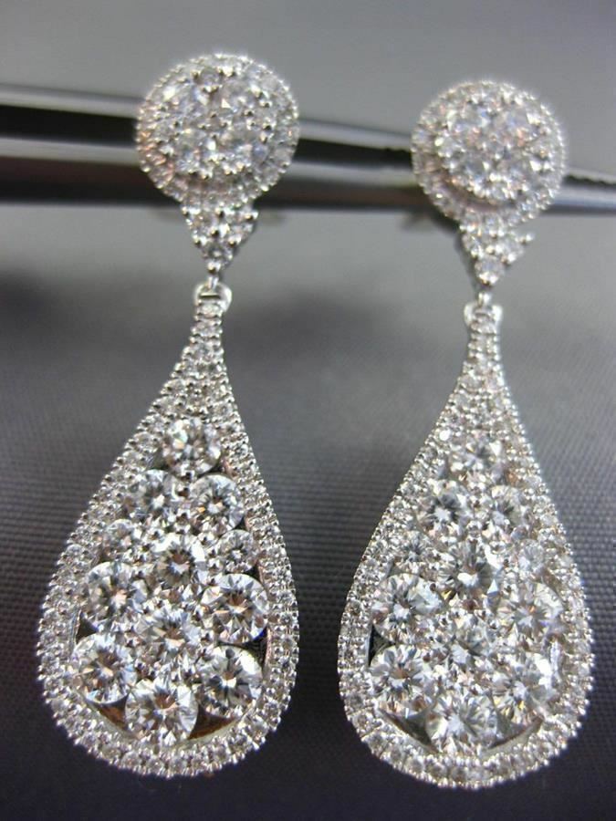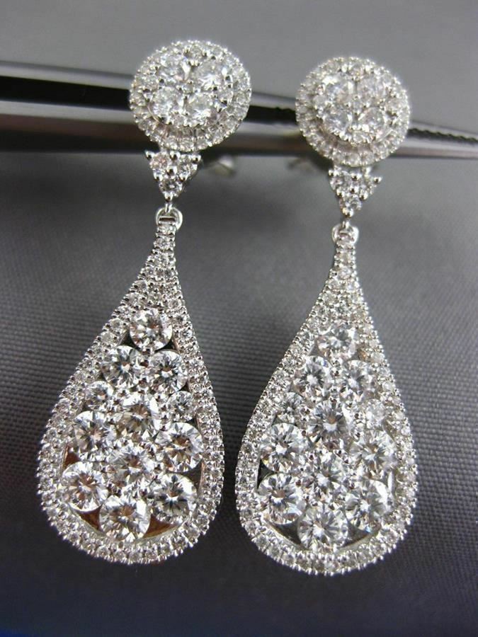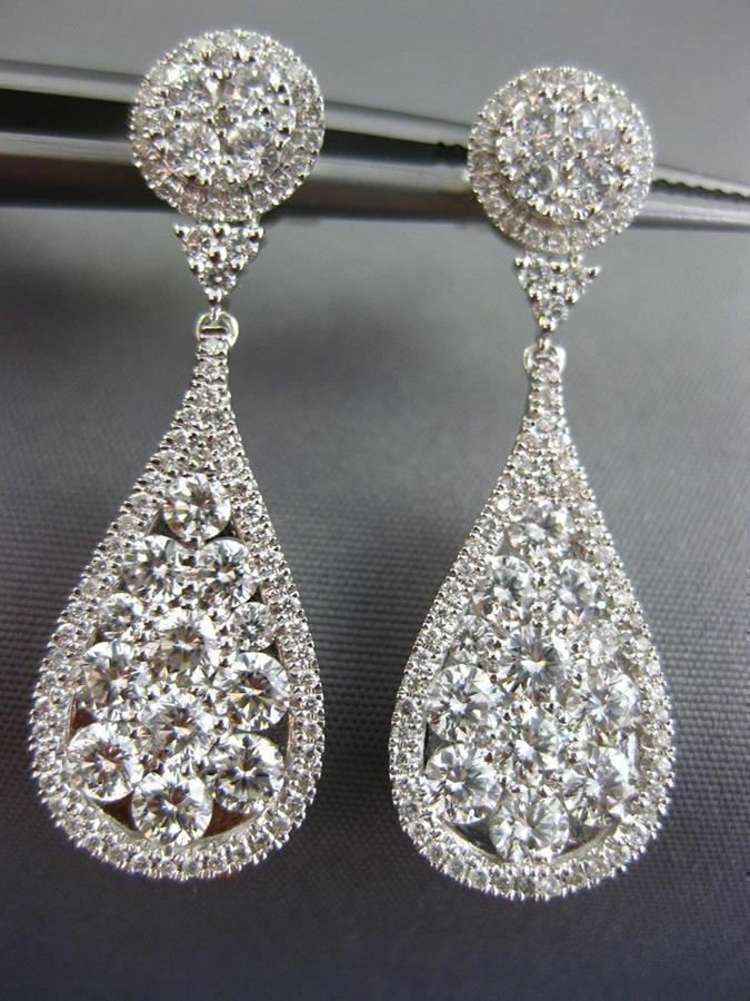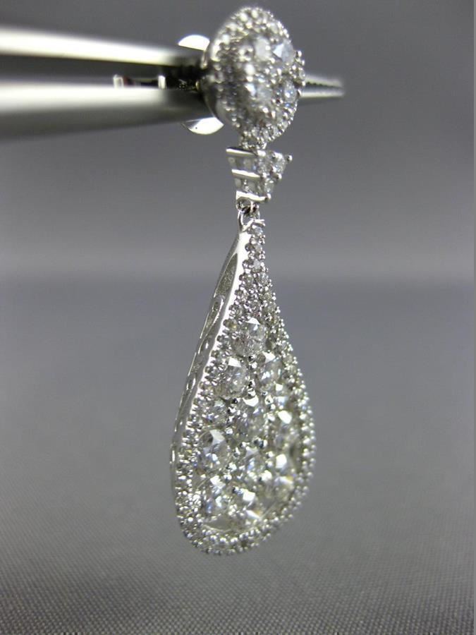 ESTATE LARGE 2.88CT DIAMOND 18K WHITE GOLD 3D CLUSTER TEAR DROP HANGING EARRINGS