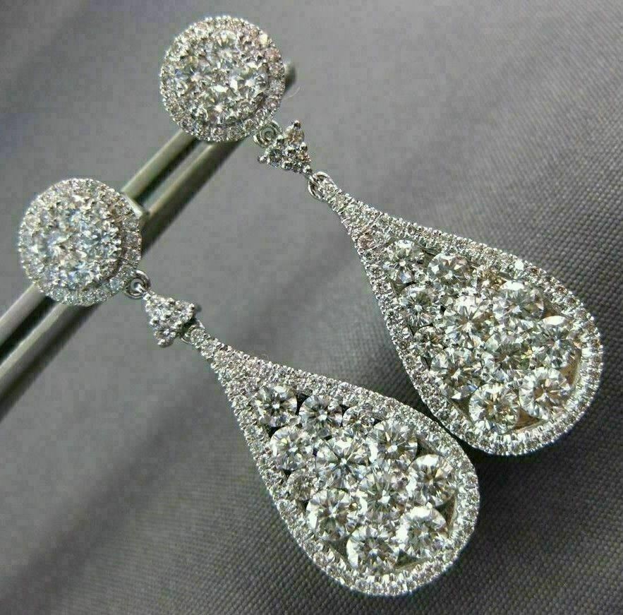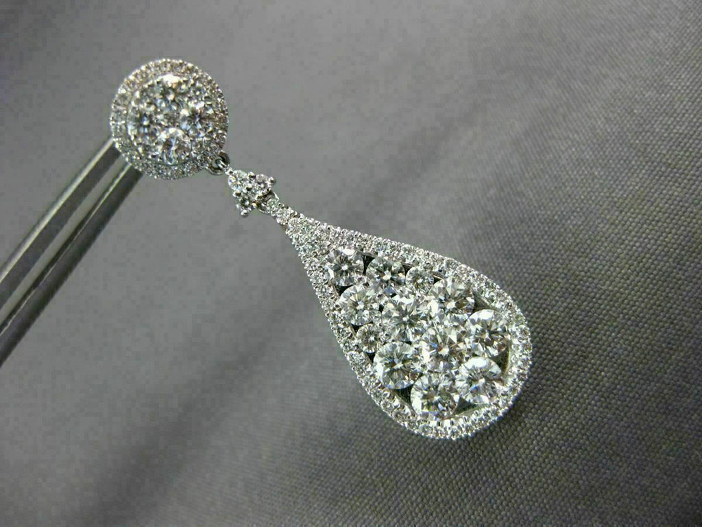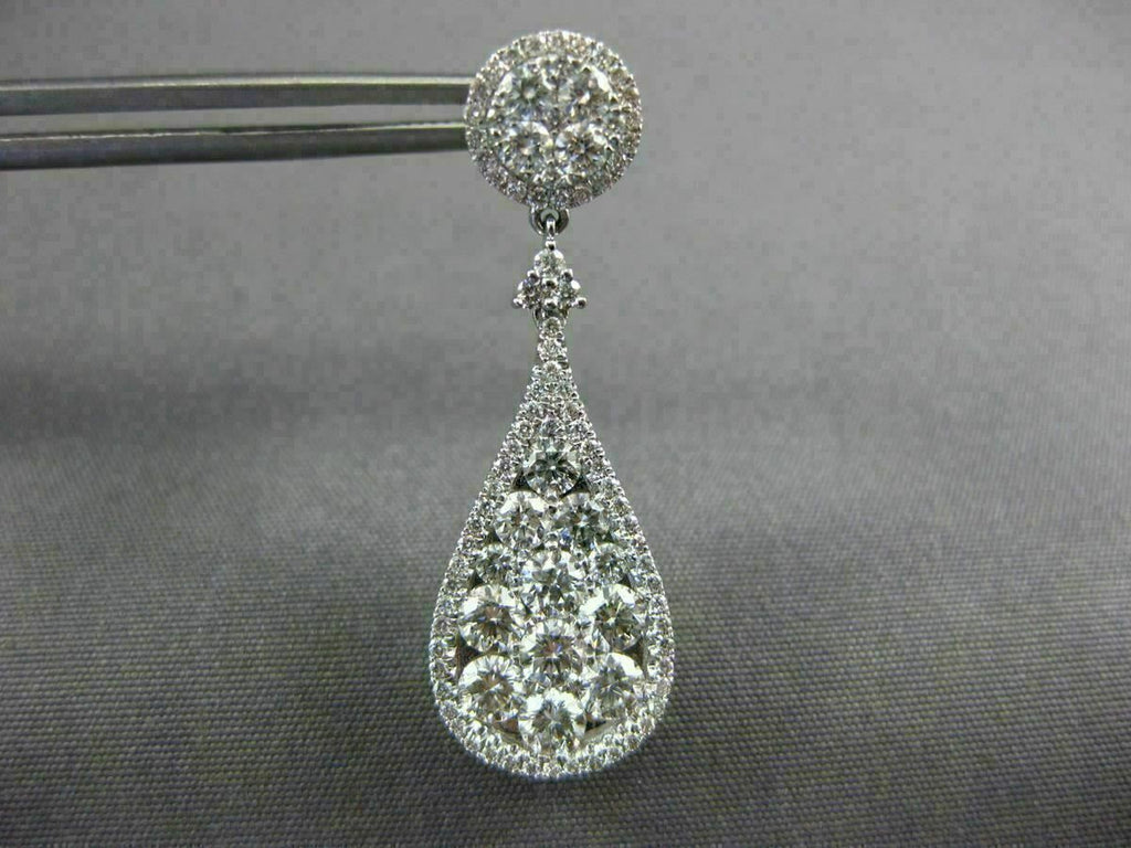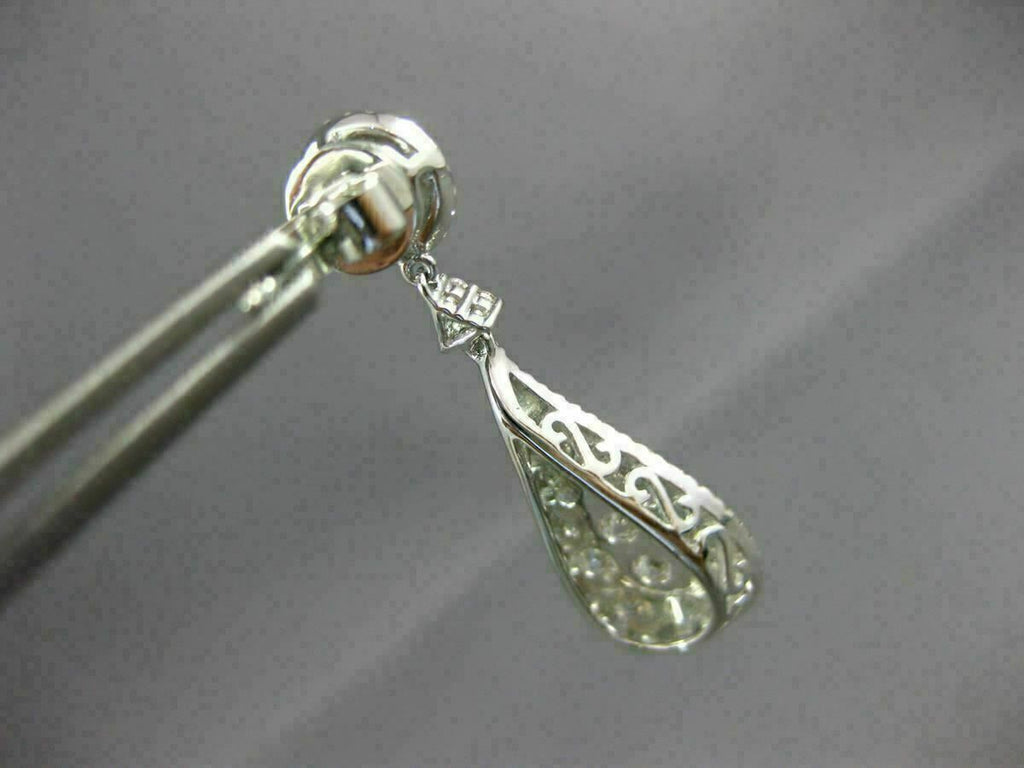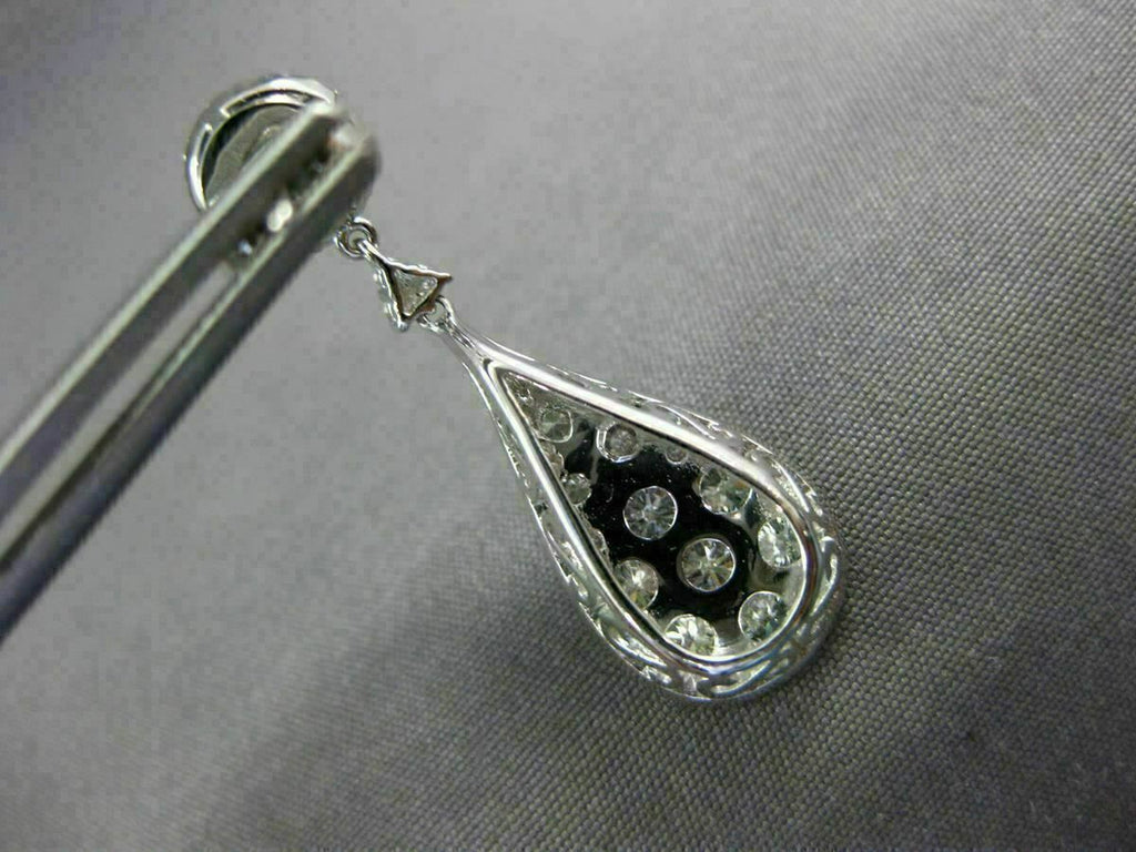 ESTATE LARGE 2.88CT DIAMOND 18K WHITE GOLD 3D TEAR DROP CLUSTER HANGING EARRINGS