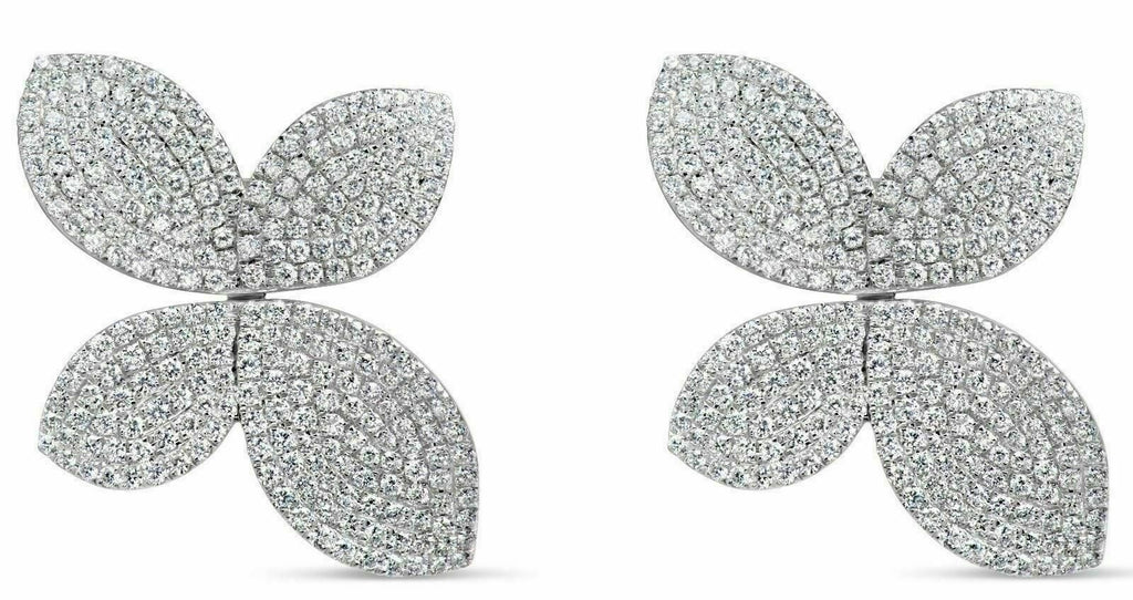 ESTATE LARGE 18KT WHITE GOLD FUN EARRINGS. 3D FLOWER LEAF DESIGN. DIAMONDS ARE F/G COLOR, VSSI CLARITY 2.90 CARATS. WRITTEN APPRAISAL AVAILABLE. COMES IN A PRESENTABLE GIFT BOX