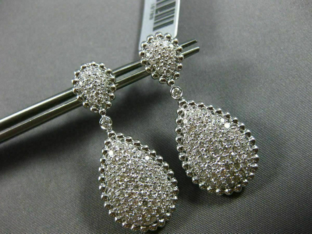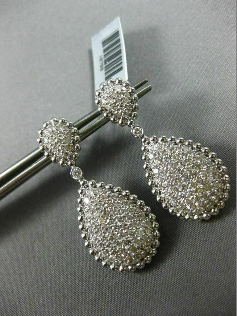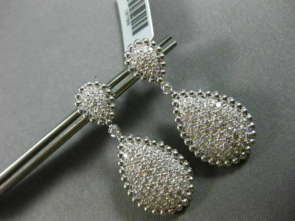 ESTATE LARGE 14KT WHITE GOLD HANGING EARRINGS. 3D CLUSTER MILGRAIN TEAR DROP DESIGN. DIAMONDS ARE F/G COLOR, VSSI CLARITY 2.92 CARATS. MEASURES 37mm X 16mm. WRITTEN APPRAISAL AVAILABLE. COMES IN A PRESENTABLE GIFT BOX