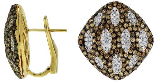 ESTATE LARGE 14KT YELLOW GOLD CLIP ON EARRINGS. 3D SQUARE DESIGN. DIAMONDS ARE F/G COLOR, VSSI CLARITY .45 CARATS. MOCHA DIAMONDS ARE 2.50 CARATS. WRITTEN APPRAISAL AVAILABLE. COMES IN A PRESENTABLE GIFT BOX.