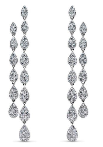 ESTATE LARGE 18KT WHITE GOLD HANGING EARRINGS. 3D TWO ROW MARQUISE PEAR SHAPE DESIGN. DIAMONDS ARE F/G COLOR, VSSI CLARITY 2.96 CARATS. WRITTEN APPRAISAL AVAILABLE. COMES IN A PRESENTABLE GIFT BOX.