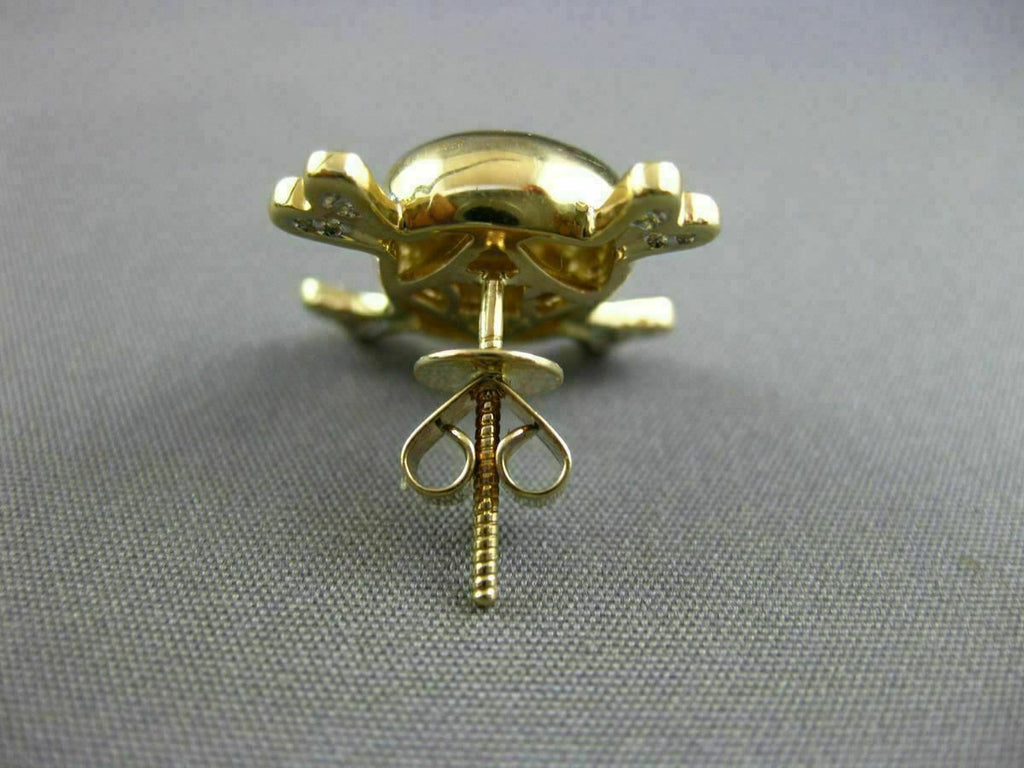 ESTATE LARGE 14KT YELLOW GOLD STUD EARRINGS. 3D HAPPY SKULL DESIGN. DIAMONDS ARE F/G COLOR, VSSI CLARITY, .20 CARATS. MEASURES 17mm X 16mm WIDE. WRITTEN APPRAISAL AVAILABLE. COMES IN A PRESENTABLE GIFT BOX