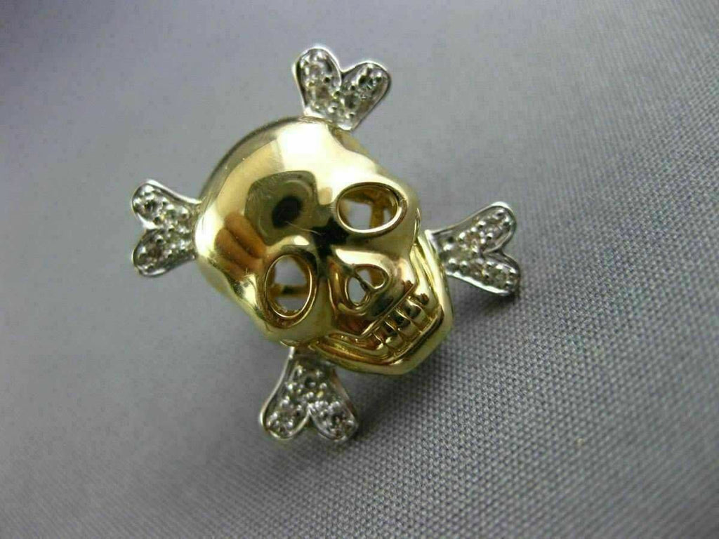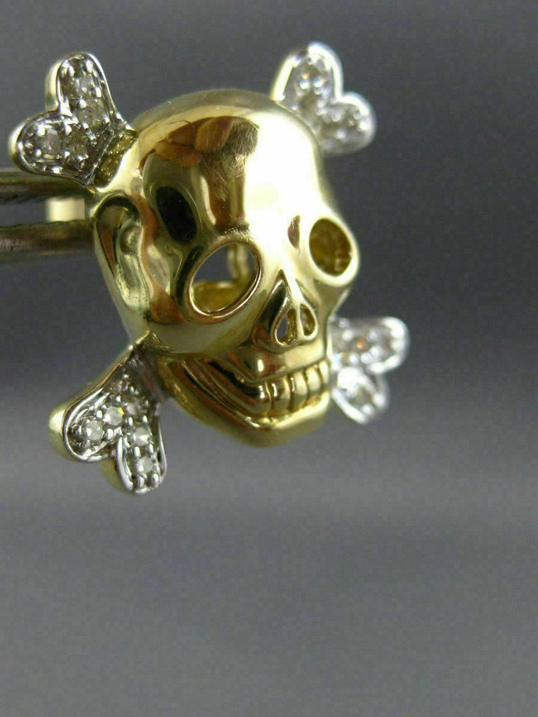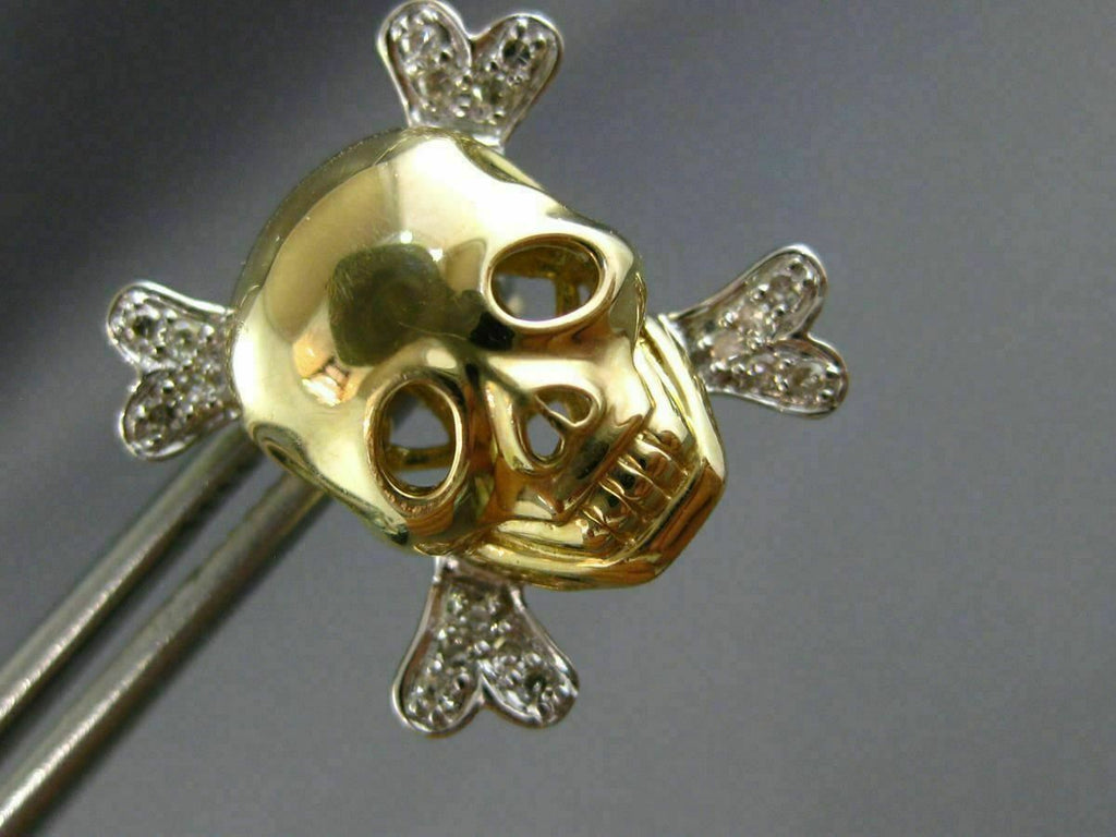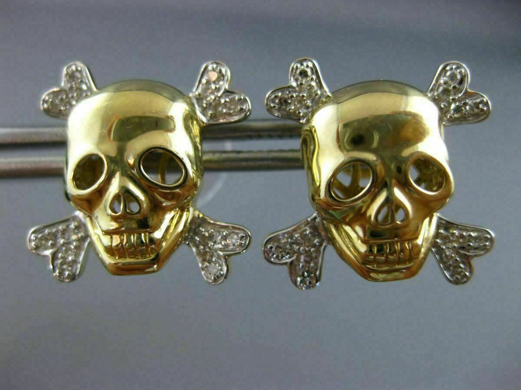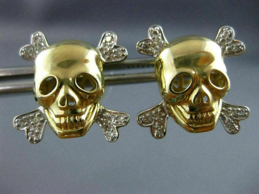 ESTATE LARGE .20CT ROUND DIAMOND 14KT YELLOW GOLD 3D HAPPY SKULL STUD EARRINGS