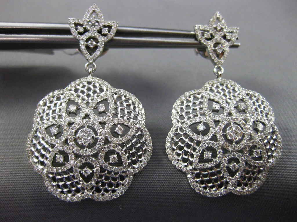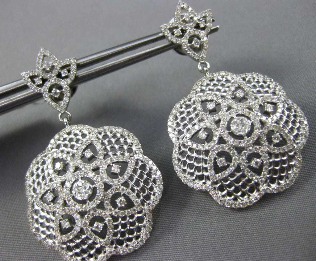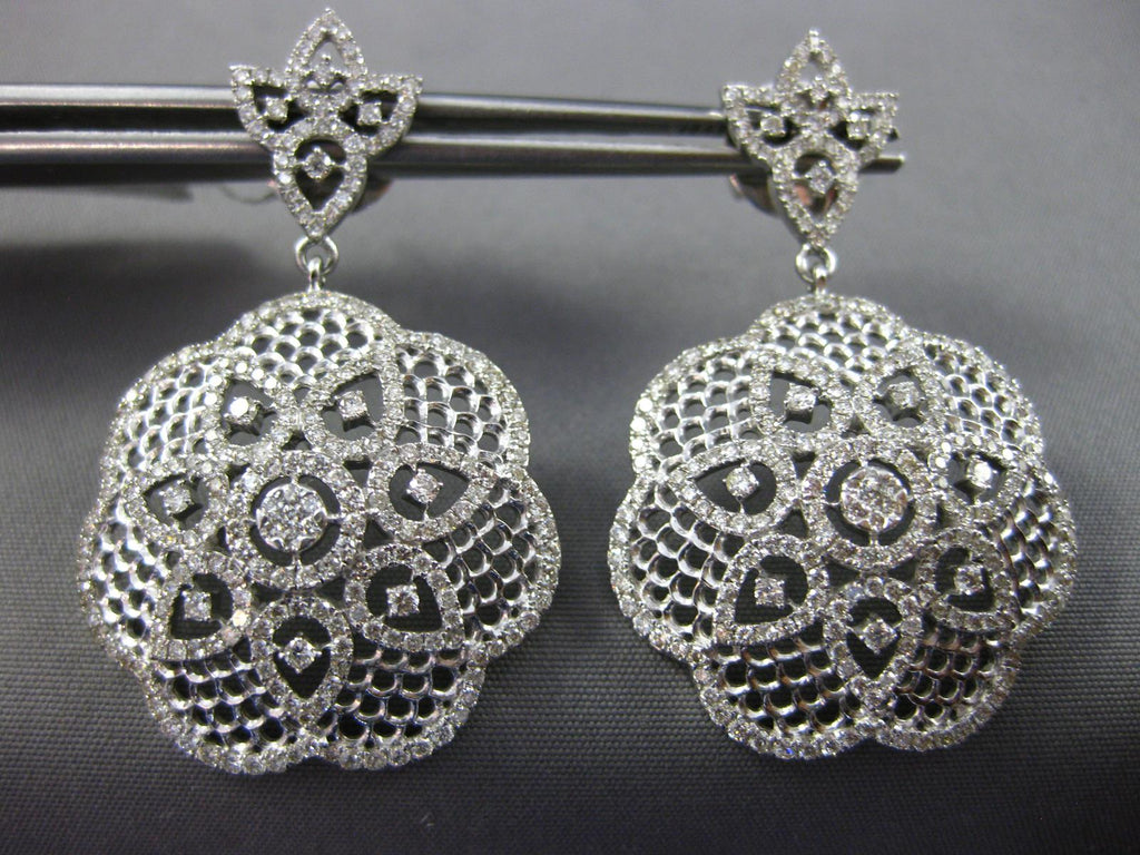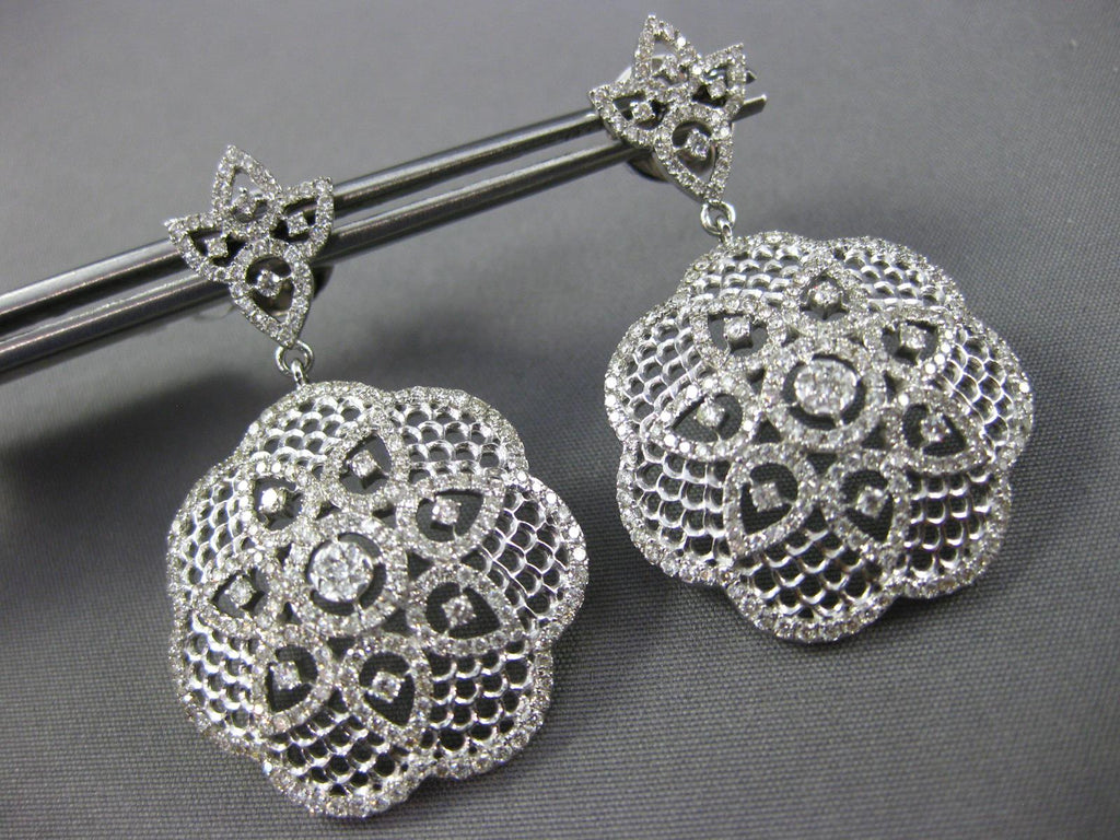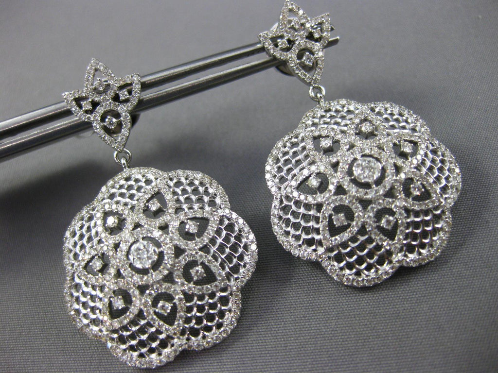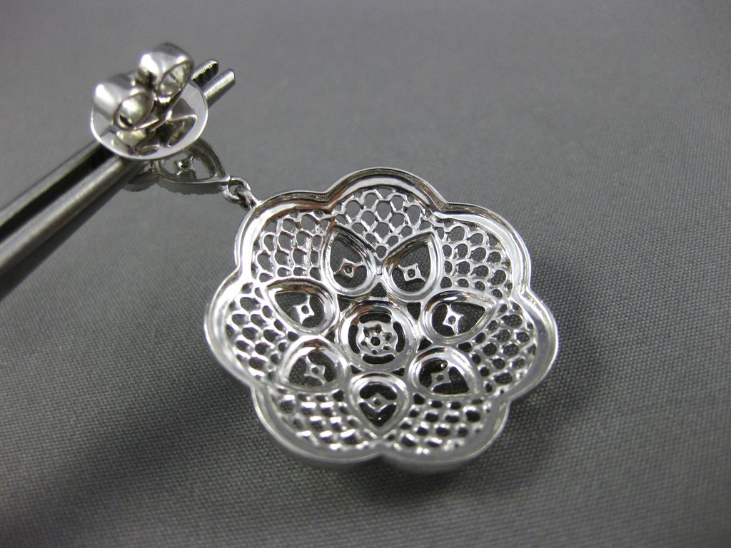 ESTATE LARGE 2.35CT DIAMOND 14KT WHITE GOLD 3D FLOWER FILIGREE HANGING EARRINGS