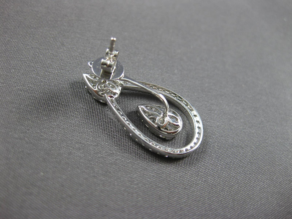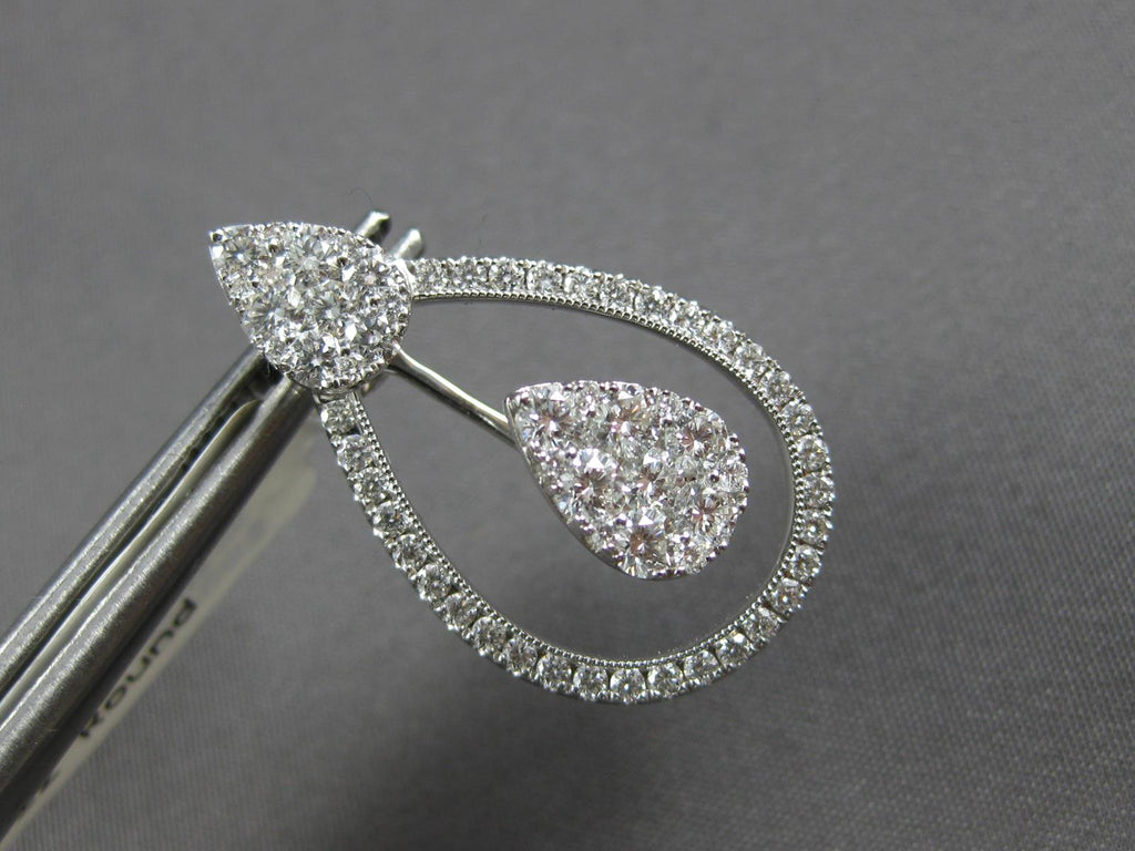 ESTATE LARGE 2.44CT DIAMOND 18K WHITE GOLD 3D CLUSTER TEAR DROP HANGING EARRINGS