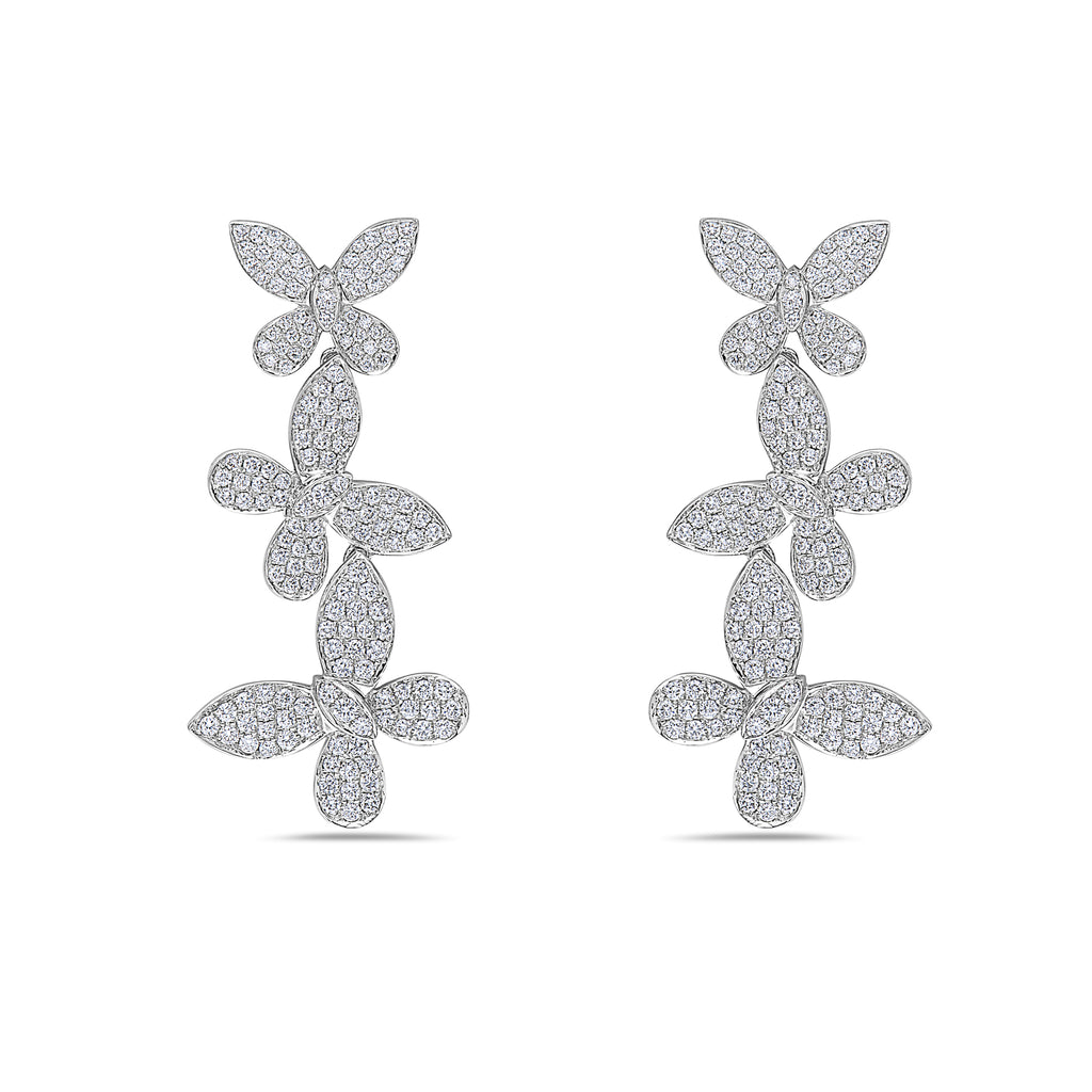ESTATE LARGE 18KT WHITE GOLD FUN HANGING EARRINGS. 3D MULTI BUTTERFLY DESIGN. DIAMONDS ARE F/G COLOR, VSSI CLARITY 2.65 CARATS. WRITTEN APPRAISAL AVAILABLE. COMES IN A PRESENTABLE GIFT BOX.