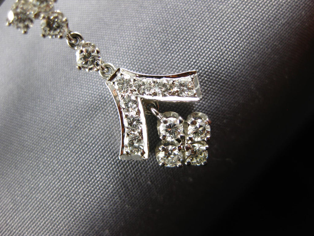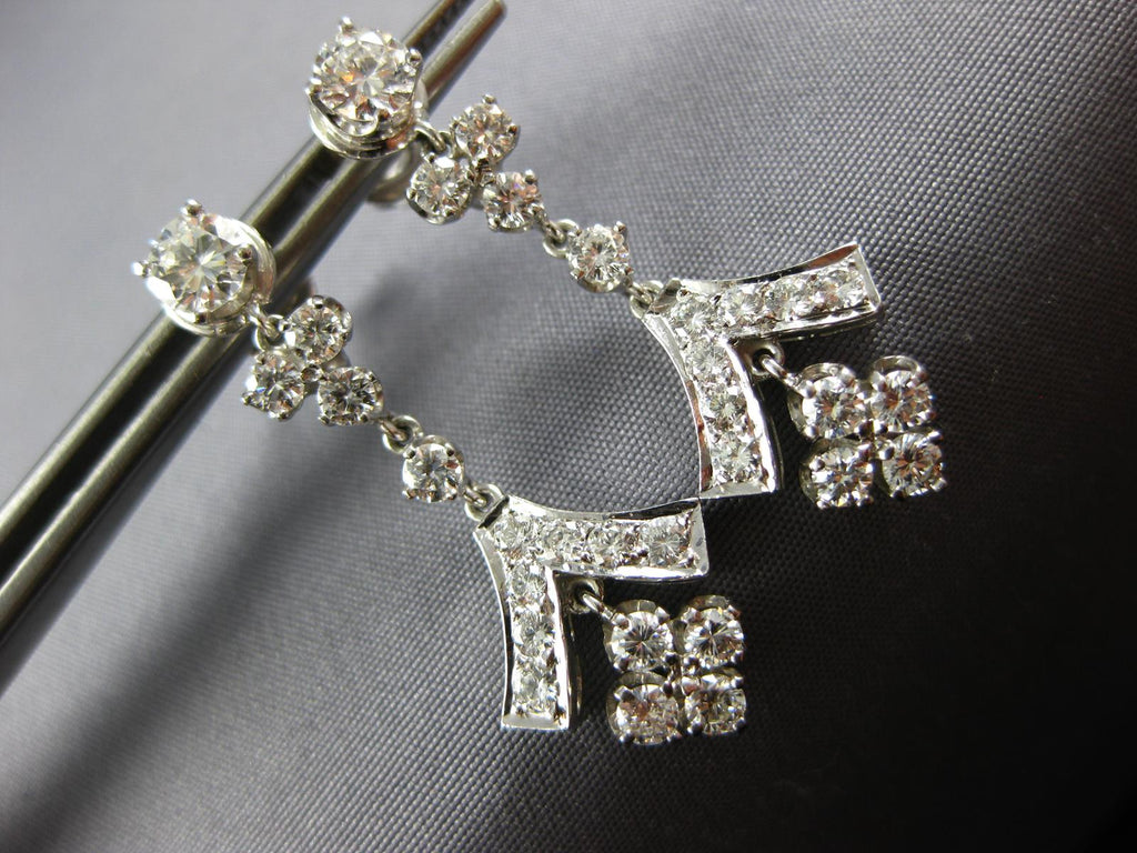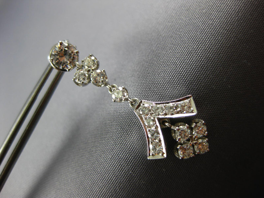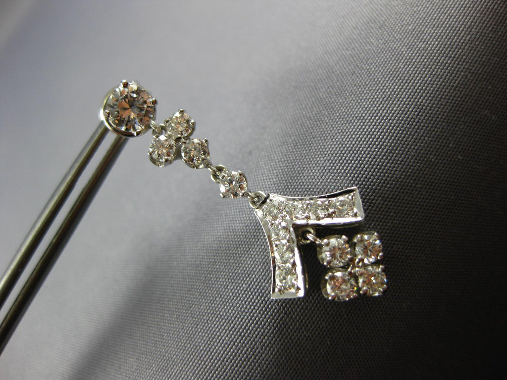 ESTATE LARGE 3.0CT DIAMOND 14KT WHITE GOLD 3D ROUND CHANDELIER HANGING EARRINGS