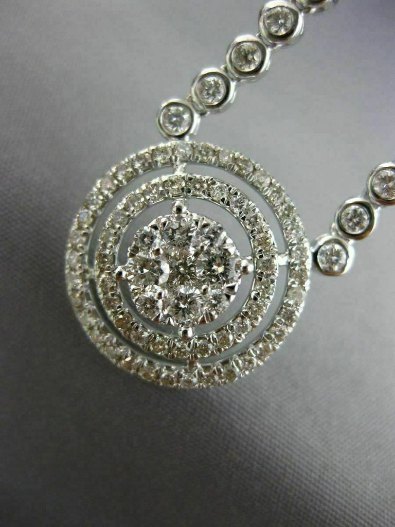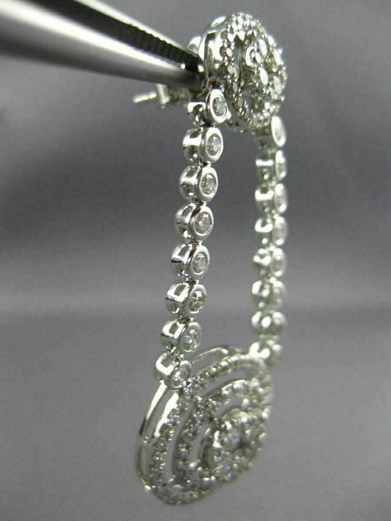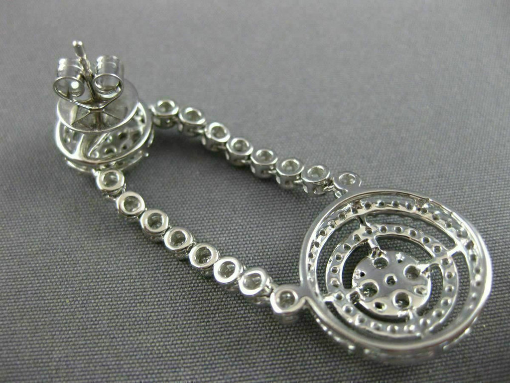 ESTATE LARGE 3.20CT DIAMOND 14K WHITE GOLD CIRCULAR DOUBLE HALO HANGING EARRINGS